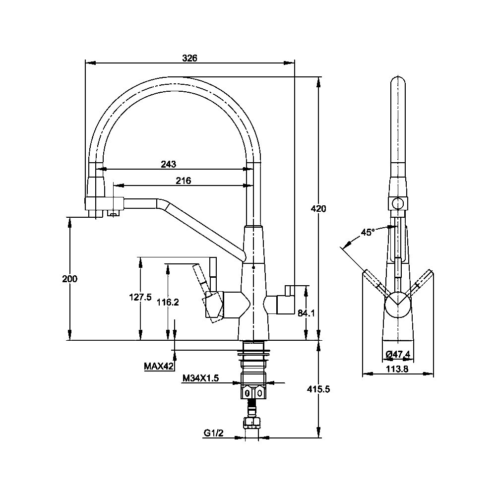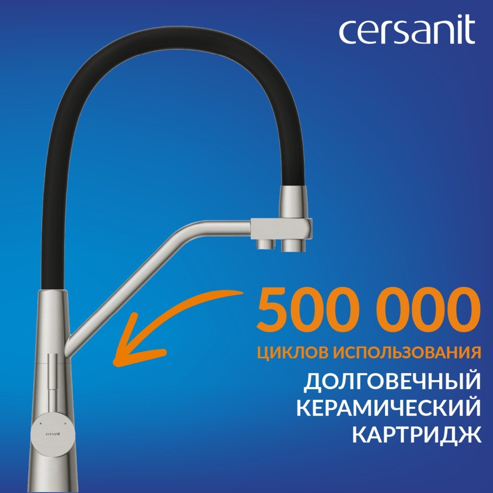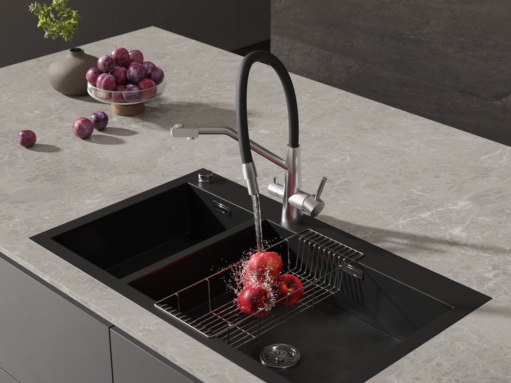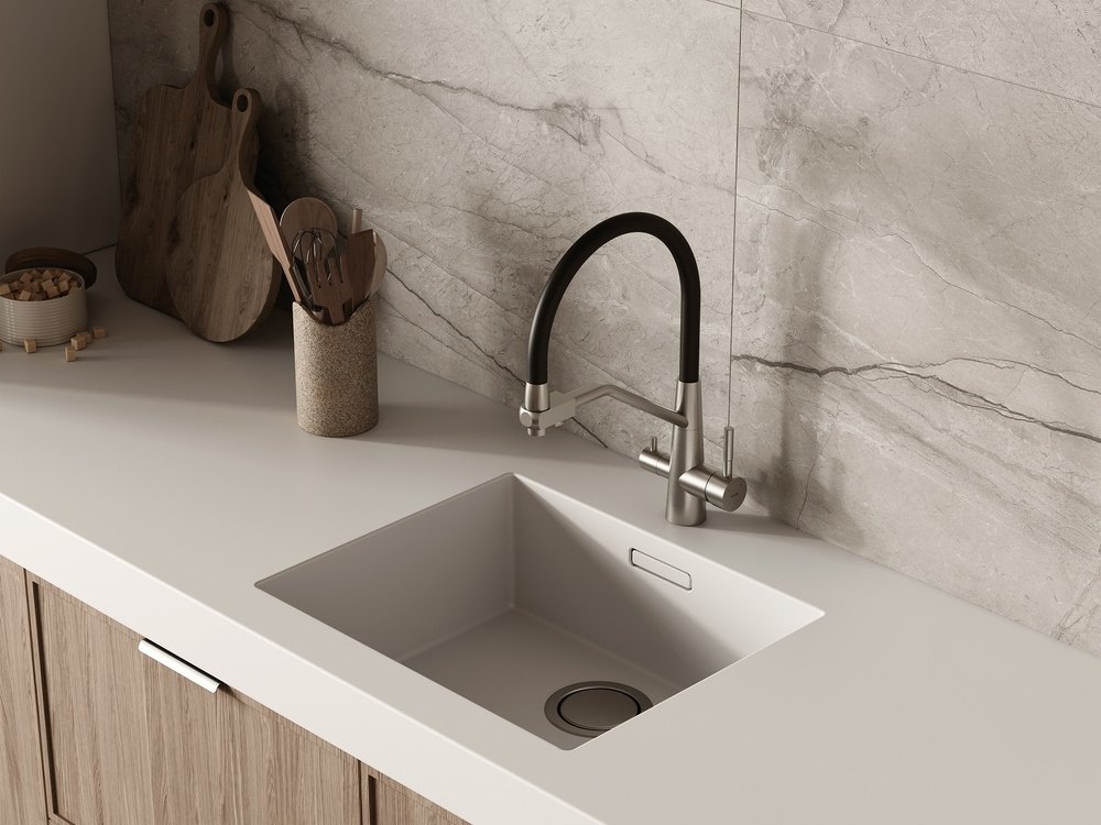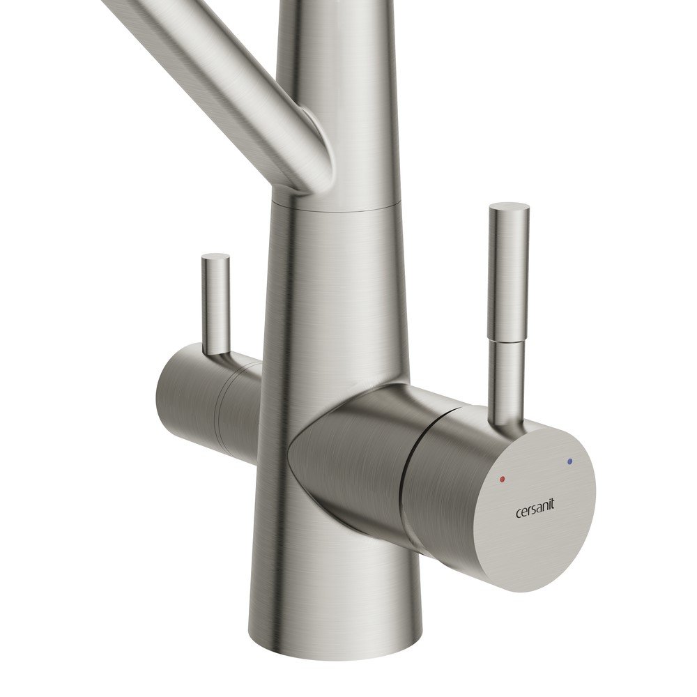 Смесители Vivo стали воплощением лучших технических идей, цель которых — сделать нашу жизнь комфортнее. Модель с необычным дизайном выгодно дополнит любую кухню, от классической до лофтовой или хайтека. Два отдельных излива под проточную и фильтрованную воду решат бытовые задачи. Смеситель оснащен гибким изливом из термостойкого силикона. Материал нетоксичен, а потому безопасен для использования на кухне. Выполненный из качественных материалов, он обладает повышенной износостойкостью и устойчивостью к перегибам. Отдельный излив предусмотрен под фильтрованную воду. Смеситель оснащен системой с двумя ручками. Одна включает проточную воду, а вторая — проточную. Внутри излива расположен аэратор Neoperl.