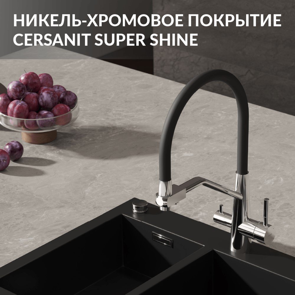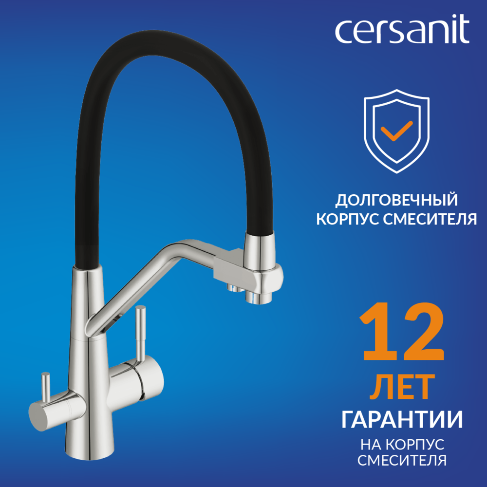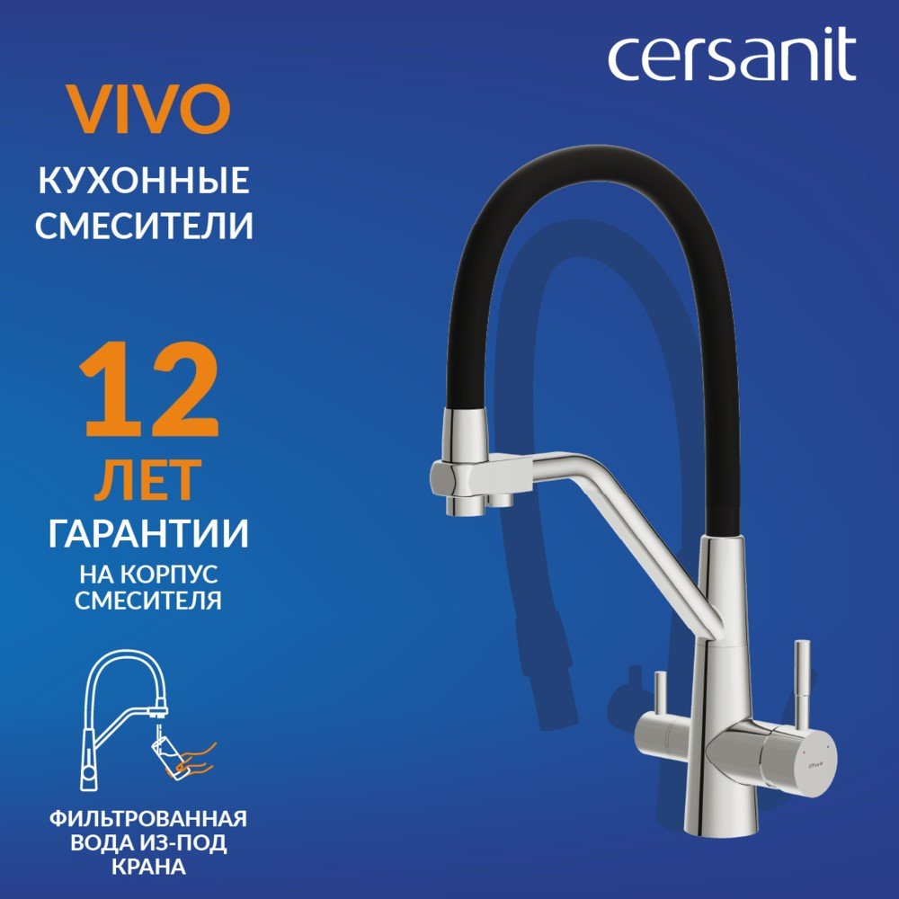 Отзывы о Смеситель для кухни Cersanit Живой (Vivo) 68217 с гибким изливом, черный, хром