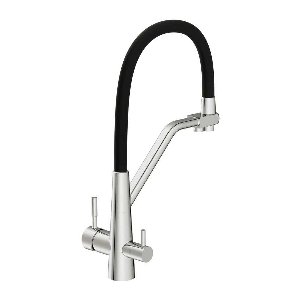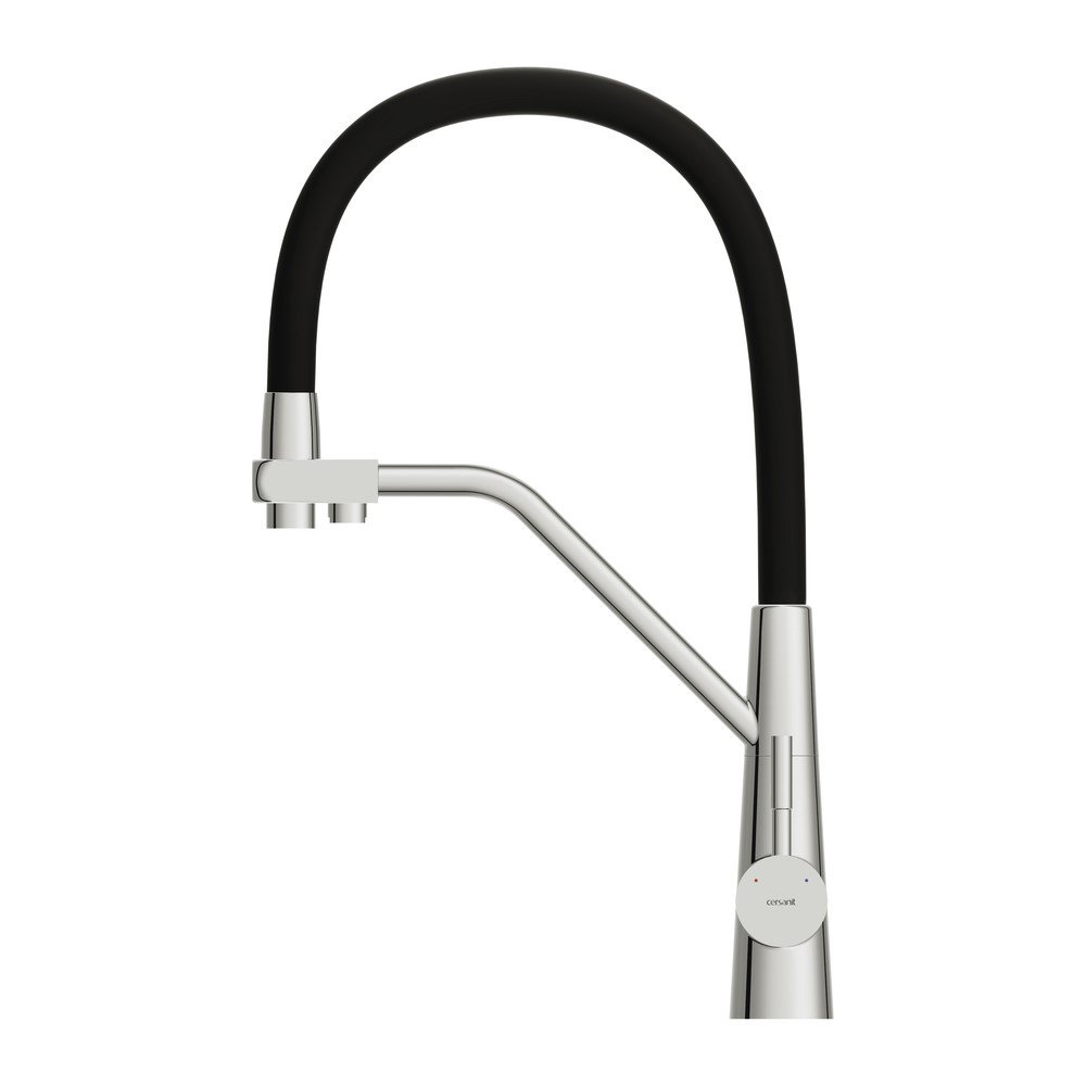 Смеситель для кухни Cersanit Живой (Vivo) 68217 с гибким изливом, черный, хром