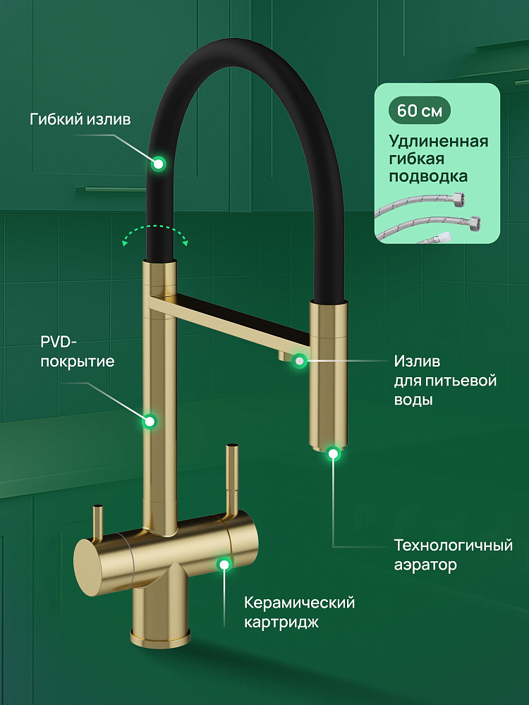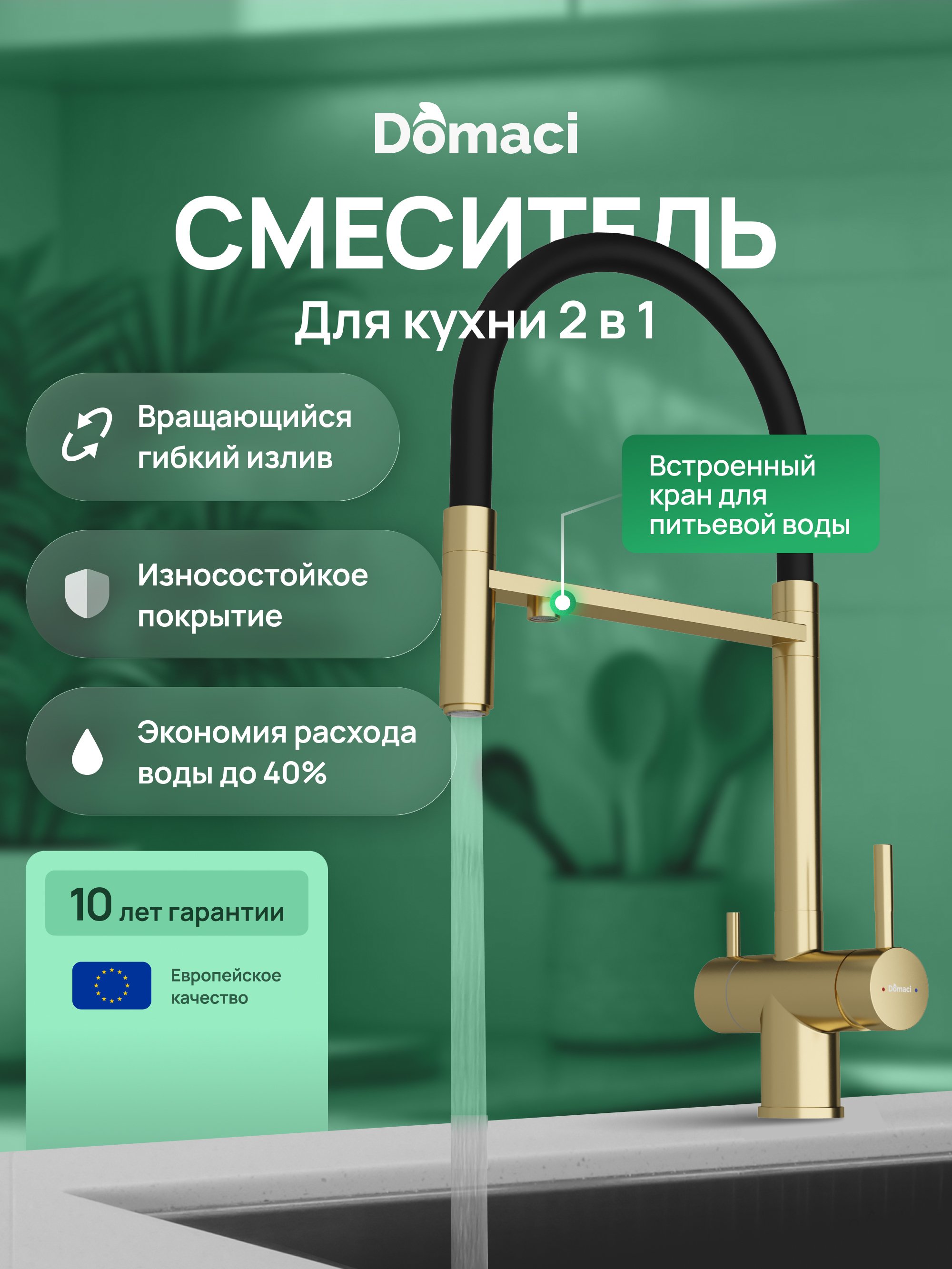 Отзывы о Смеситель для кухни Domaci Ливорно D8644GM золото матовое