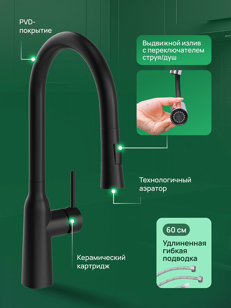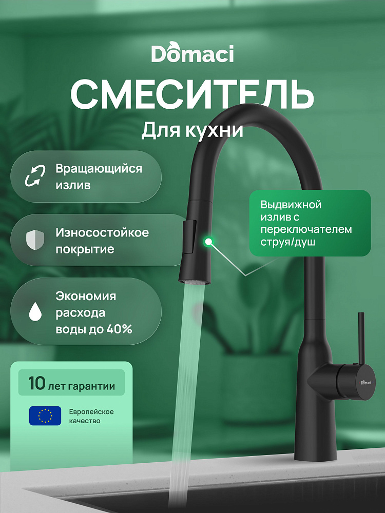 Отзывы о Смеситель для кухни Domaci Ливорно D90111BK черный
