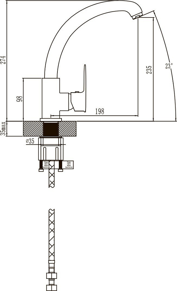корпус с высоким изливом классической формы изготовлен из экологически чистой