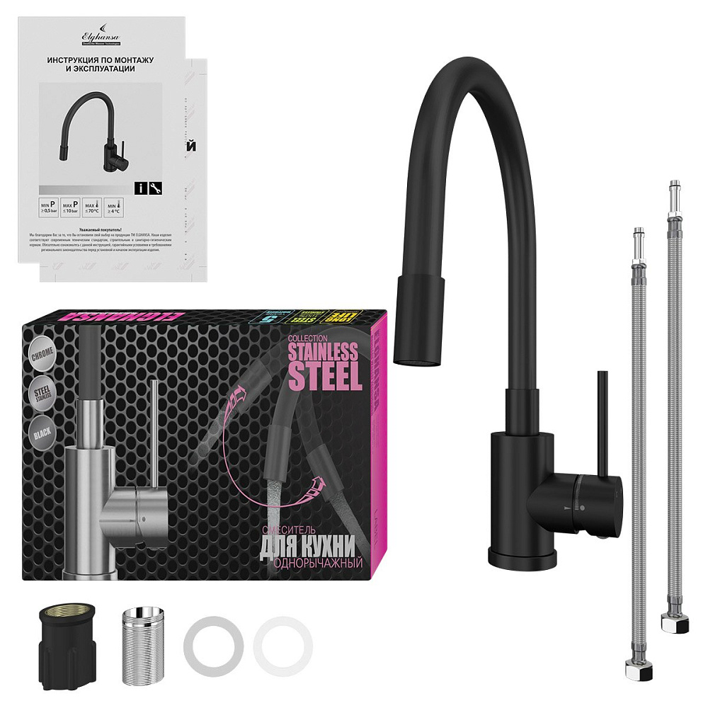 Отзывы о Смеситель для кухни Elghansa Kitchen 56F4016 матовый черный
