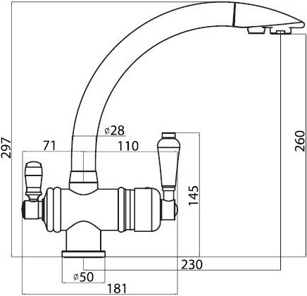рычаги управления декорированы белыми керамическими вставками. Излив с