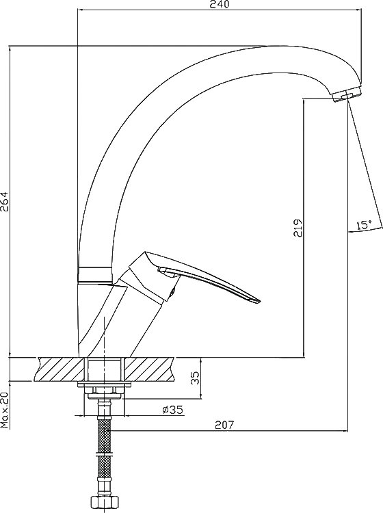 в отверстие на мойке или столешнице.