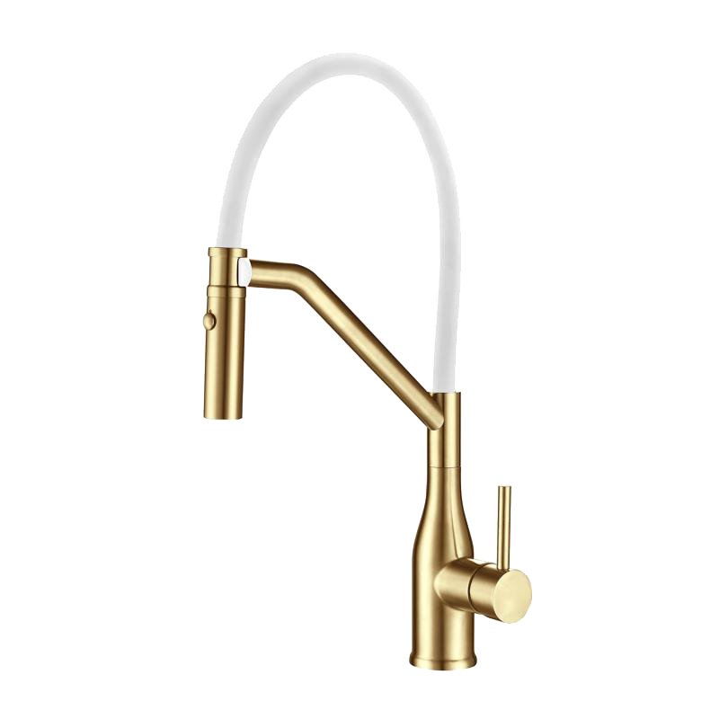 Смеситель для кухни Gappo G4098-13 с гибким изливом, золотой сатин