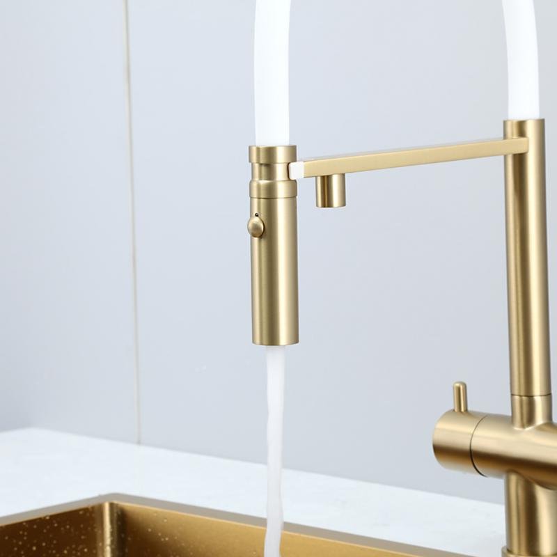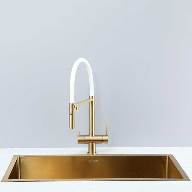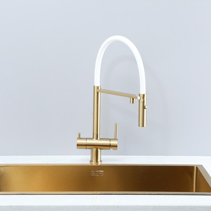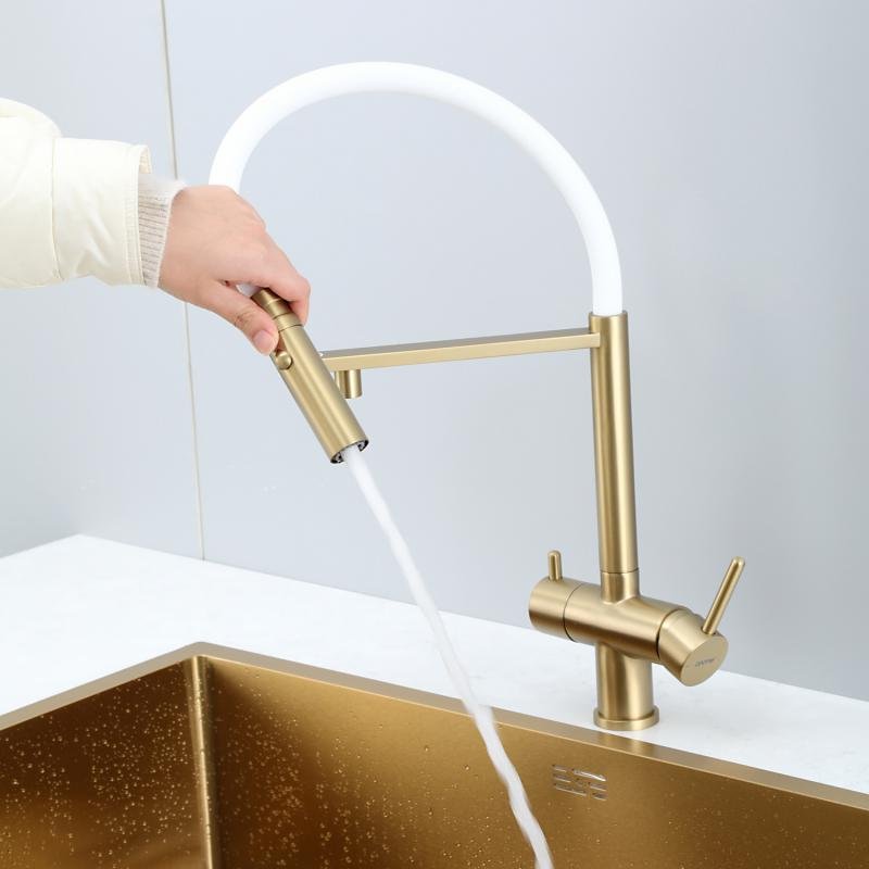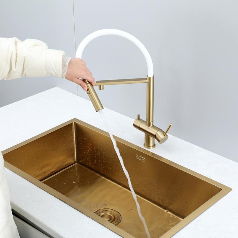 Смеситель для кухни Gappo G4397-83 с гибким изливом, золотой сатин