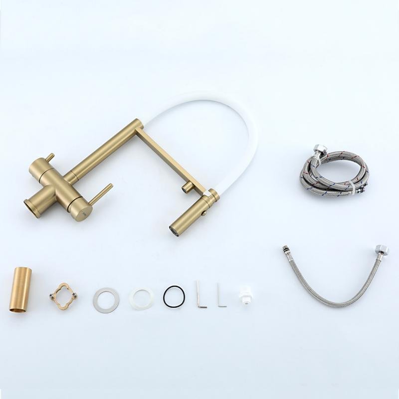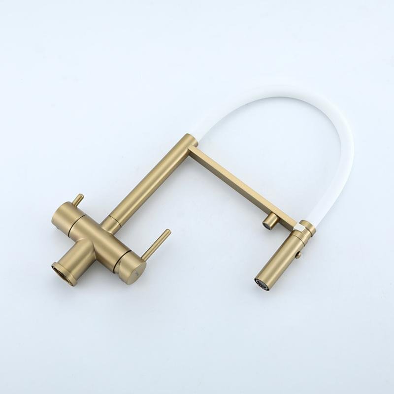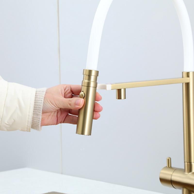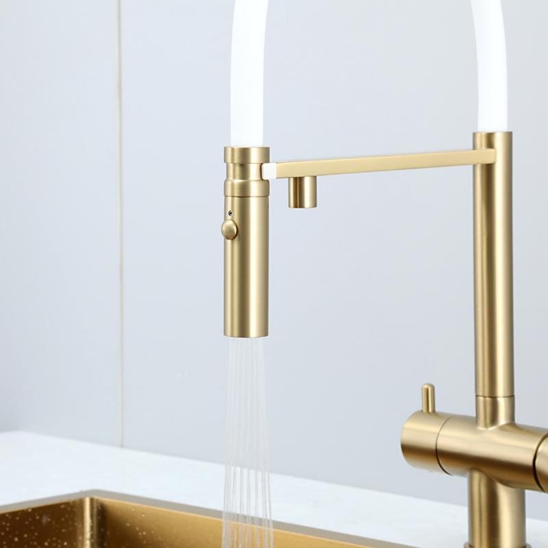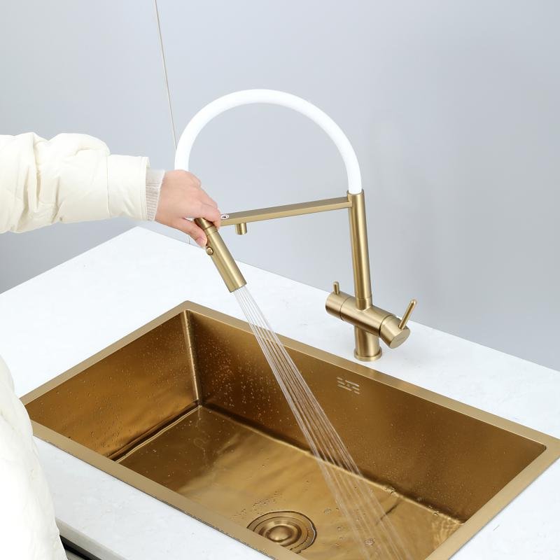 Смеситель для кухни Gappo G4397-83 с гибким изливом, золотой сатин