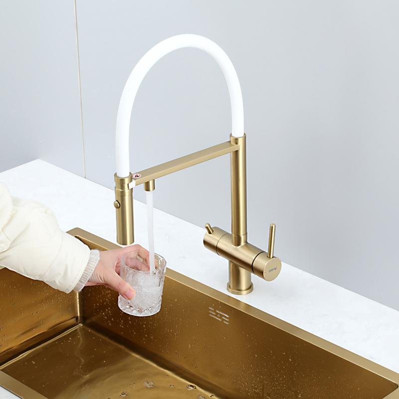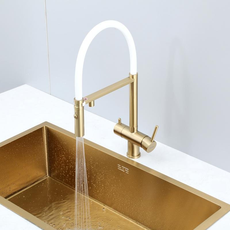 Отзывы о Смеситель для кухни Gappo G4397-83 с гибким изливом, золотой сатин