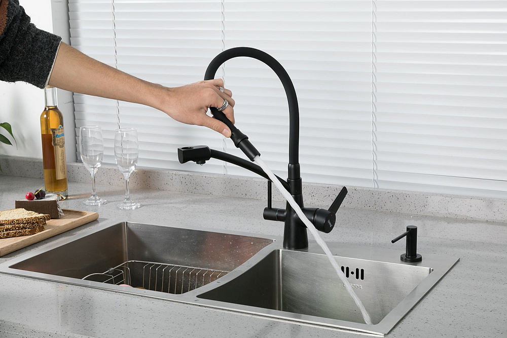 Отзывы о Смеситель для кухни Gappo G4398-16 с гибким изливом, черный