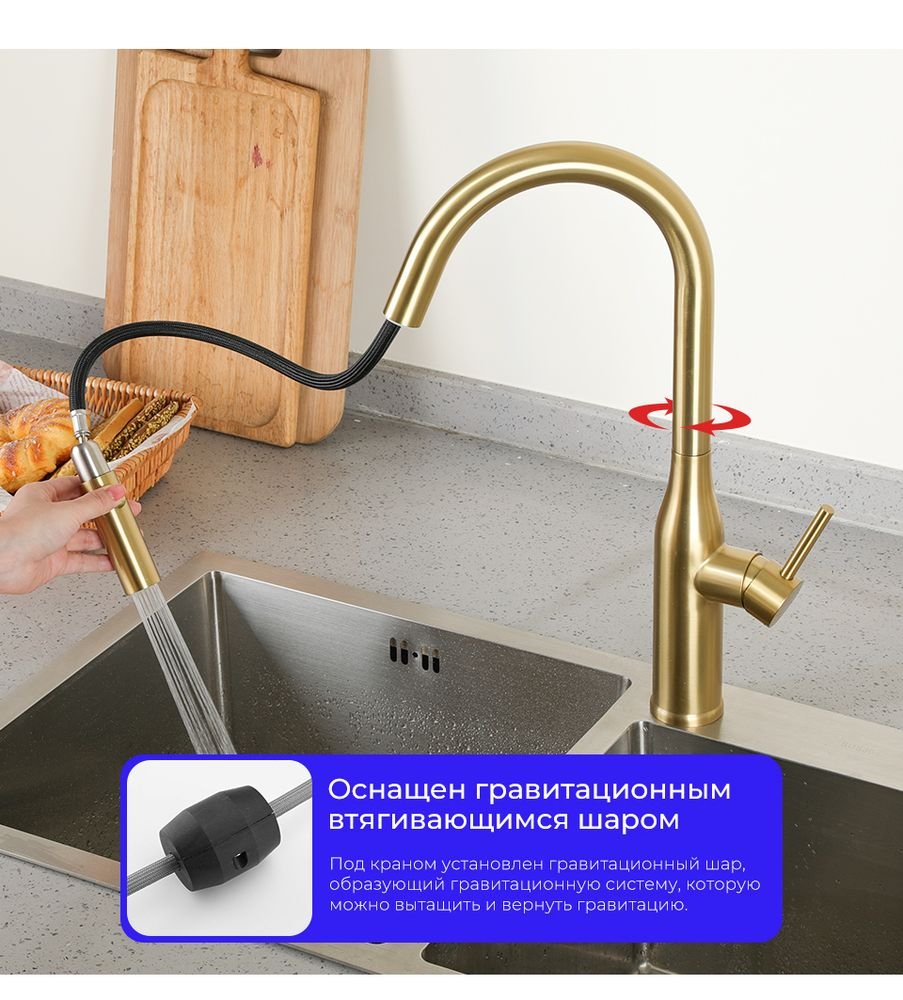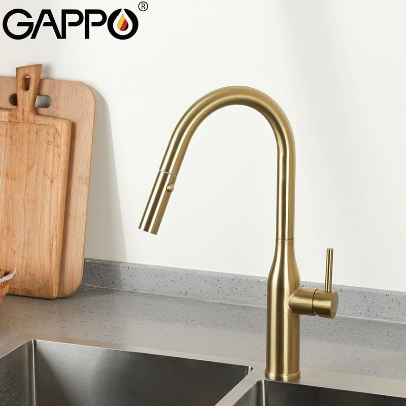 Отзывы о Смеситель для кухни Gappo G4398-43 с выдвижным изливом, золотой сатин