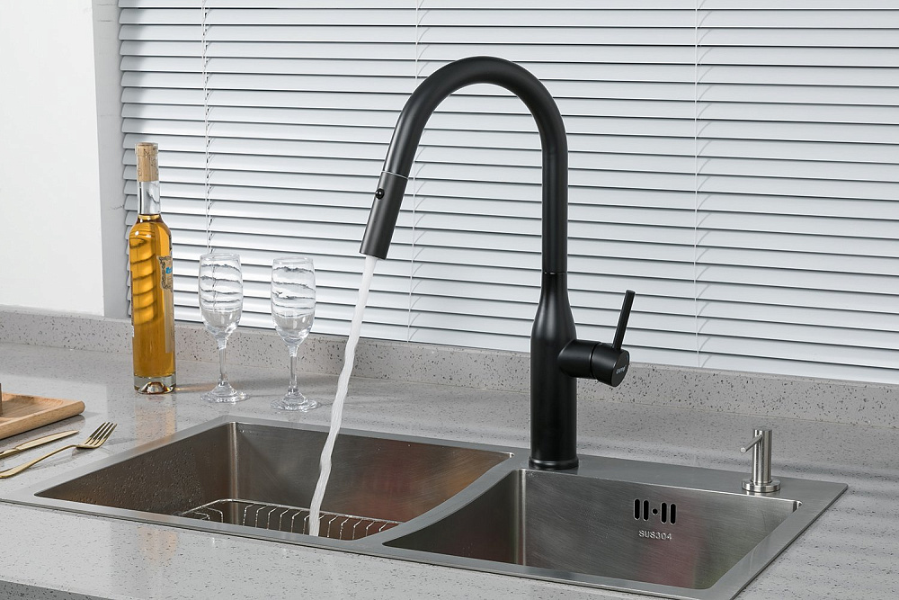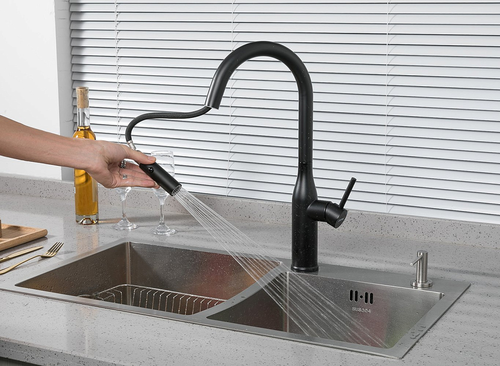 Отзывы о Смеситель для кухни Gappo G4398-46 с выдвижным изливом, черный