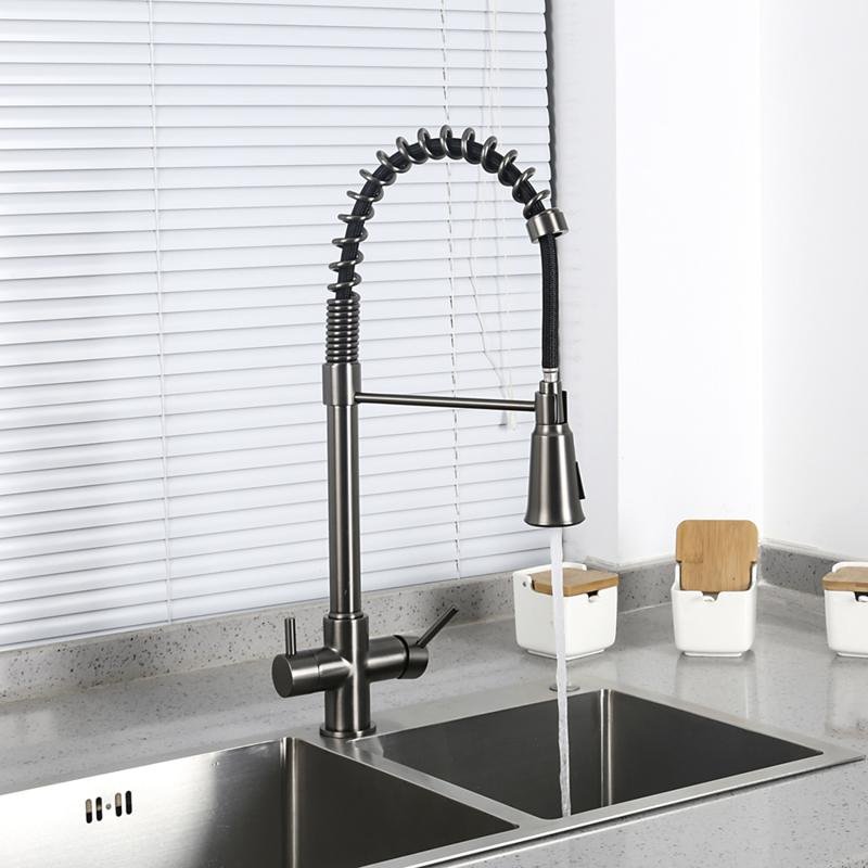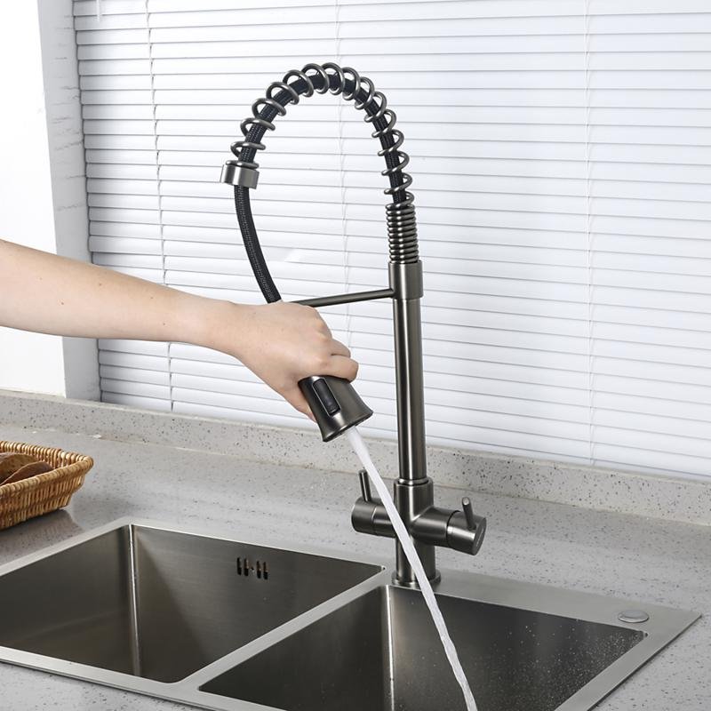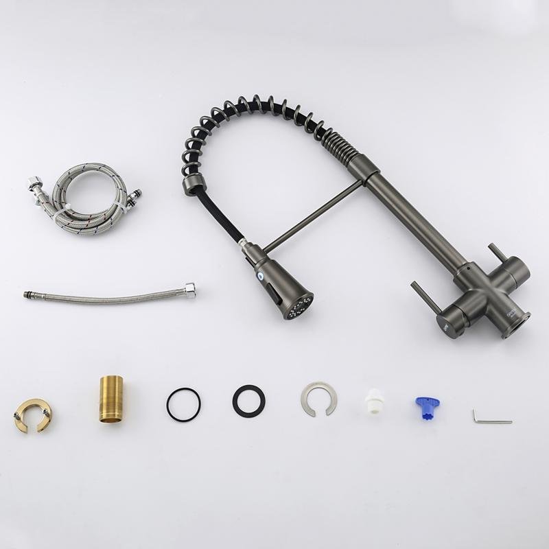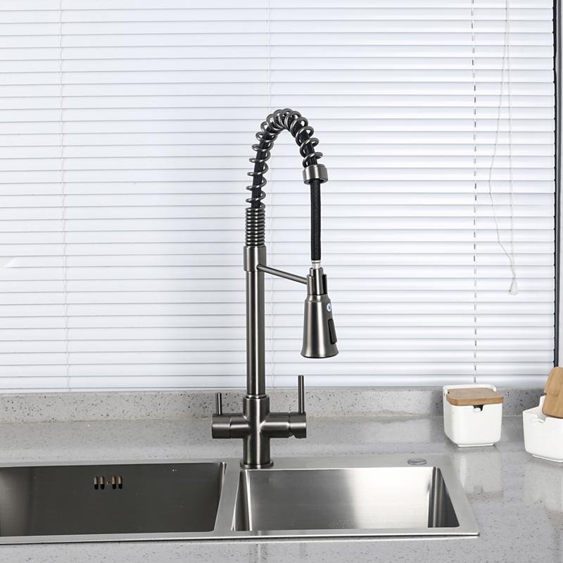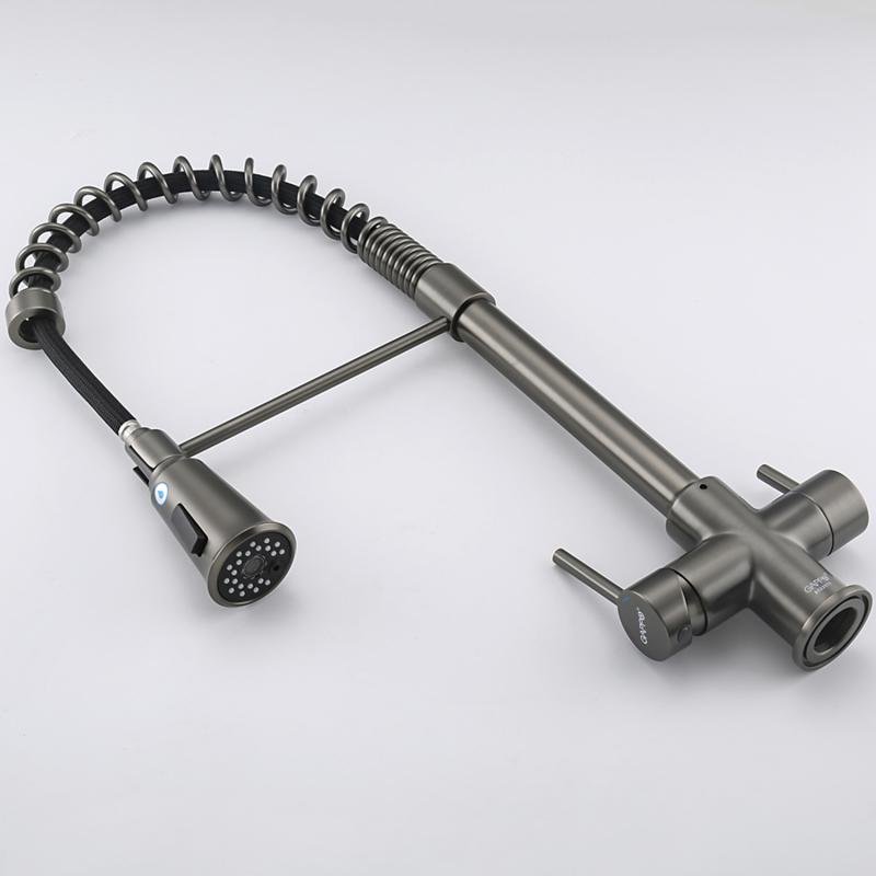 Смеситель для кухни Gappo G4398-69 с гибким изливом, оружейная сталь