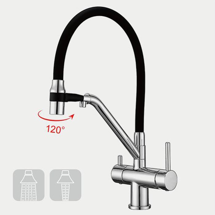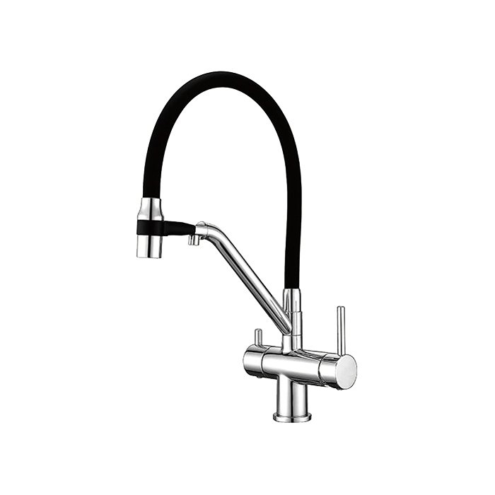 Смеситель для кухни Gappo G4398-80 с гибким изливом, хром, черный
