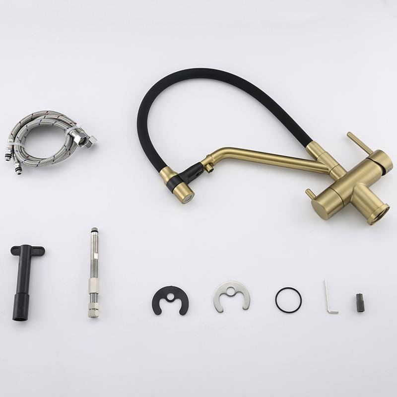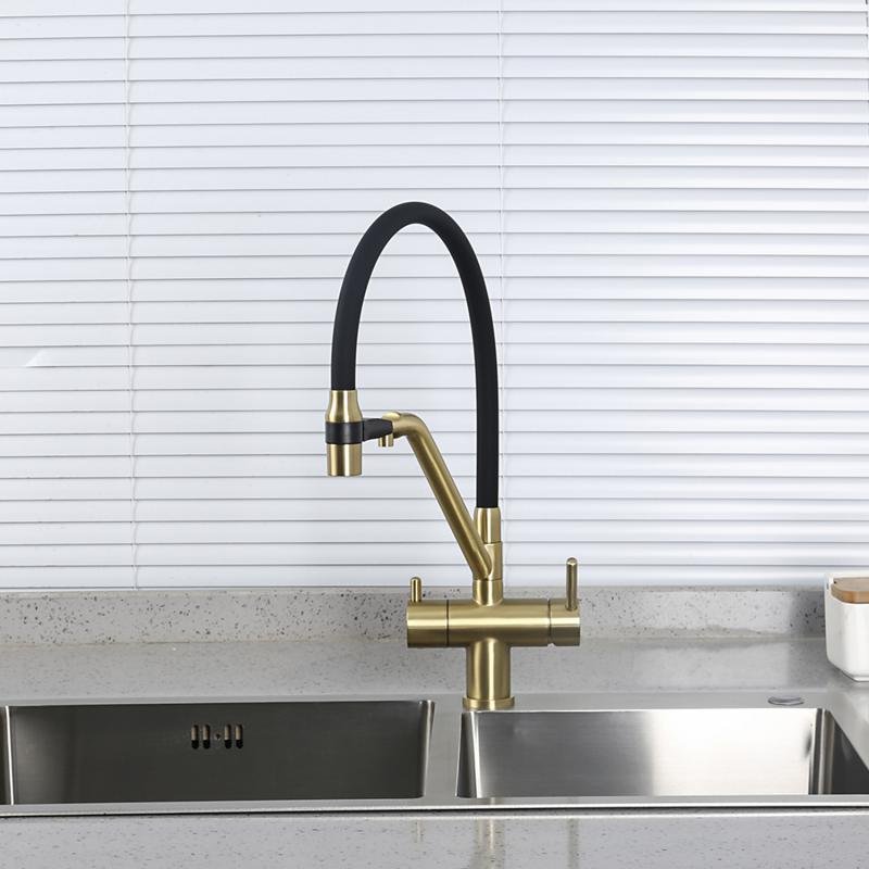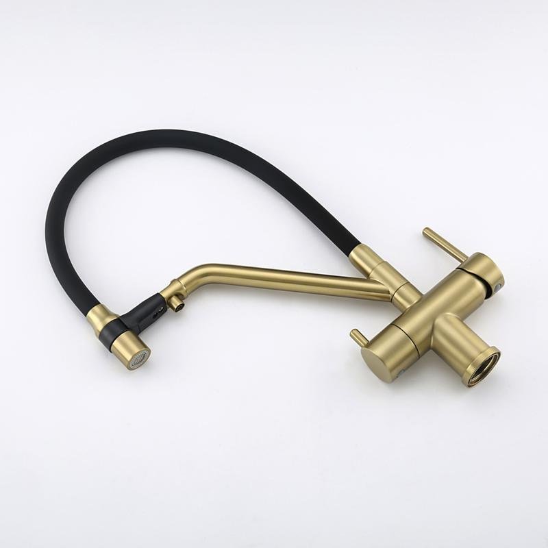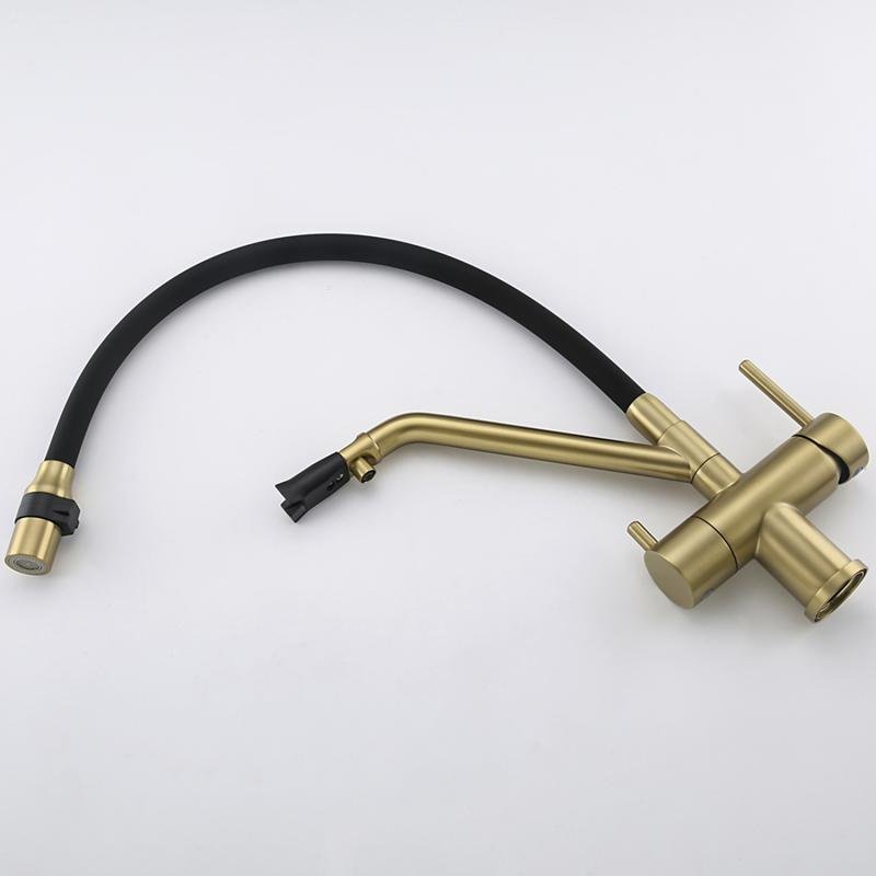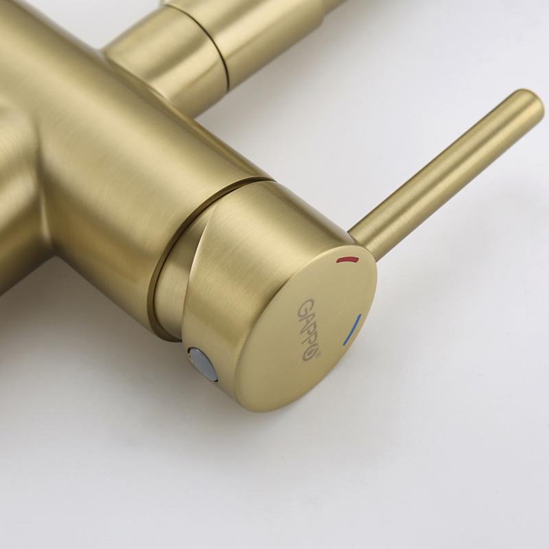 Смеситель для кухни Gappo G4398-83 с гибким изливом, золотой сатин