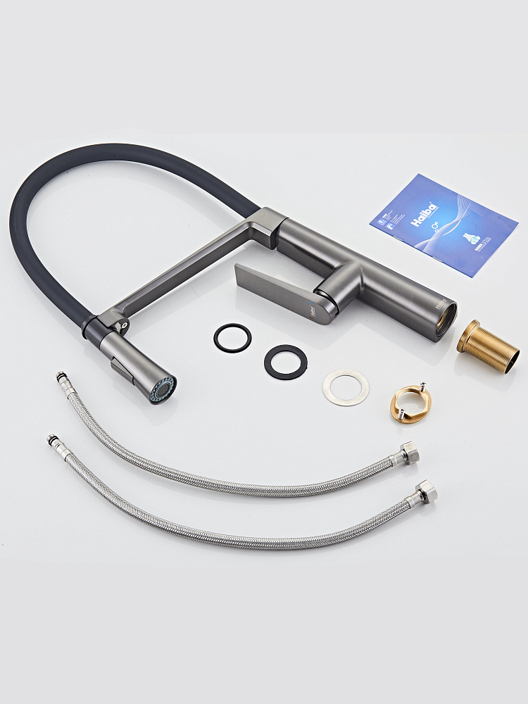 Смеситель для кухни Haiba HB73827-3 оружейная сталь