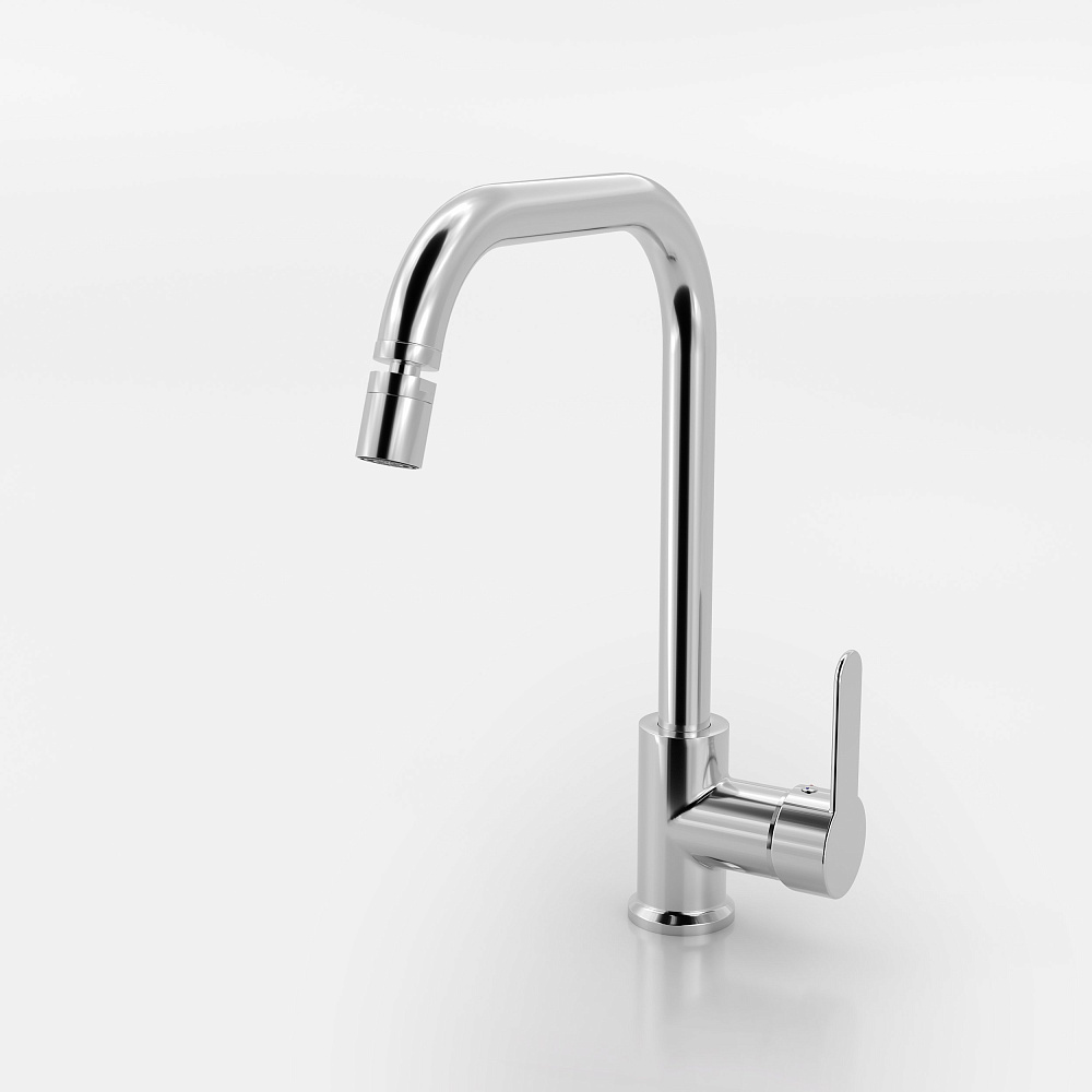 Модель высокая, с рычажным управлением и поворотным изливом. Аэратор может вращаться на 360 градусов, что поможет выбрать удобный угол наклона. Технология WaterECO отвечает за экономный расход воды.