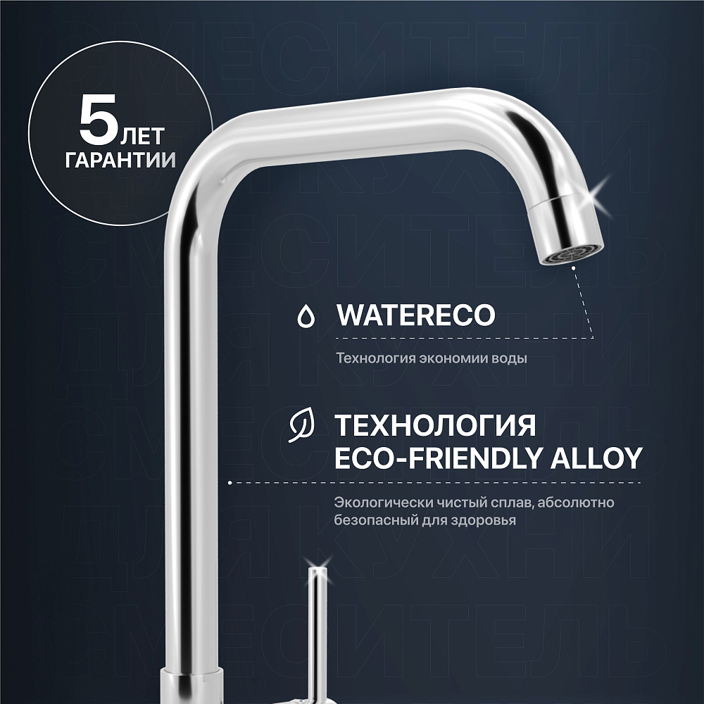 В качестве материала используется экологически чистая латунь собственного производства, созданная по технологии Eco-friendly alloy. Она не боится коррозии и не представляет опасности для здоровья, так как не содержит свинца. Хромоникелевое покрытие Diamond coating подкупает непревзойденной износостойкостью, зеркальным блеском, а также устойчивостью к царапинам и воздействию чистящих средств.