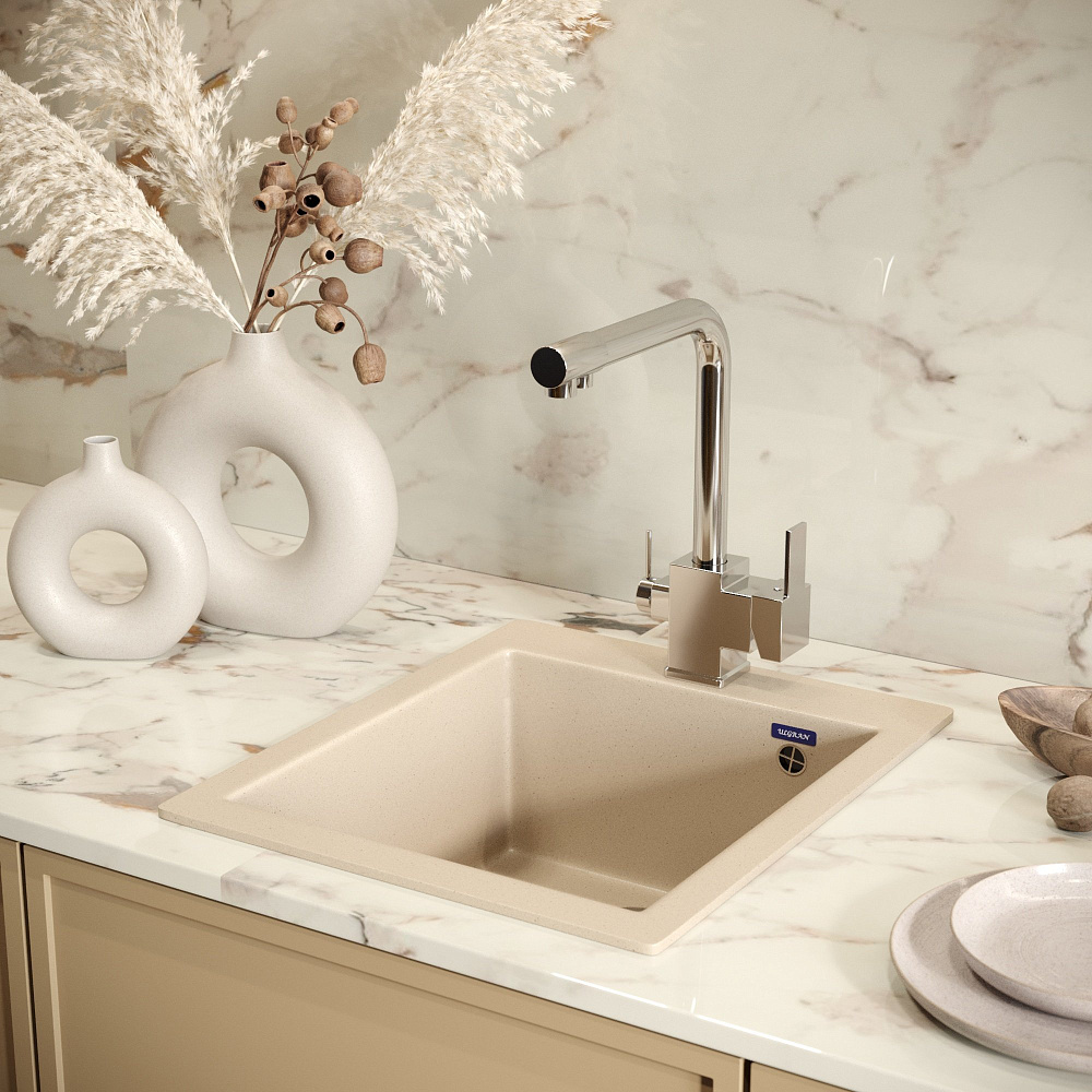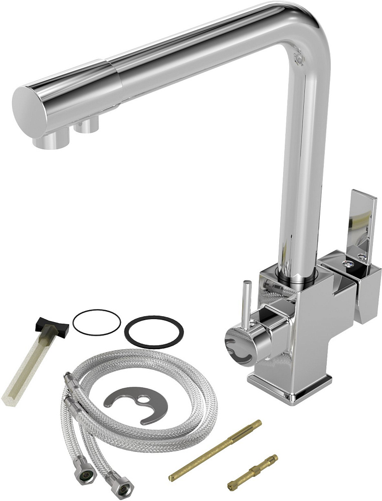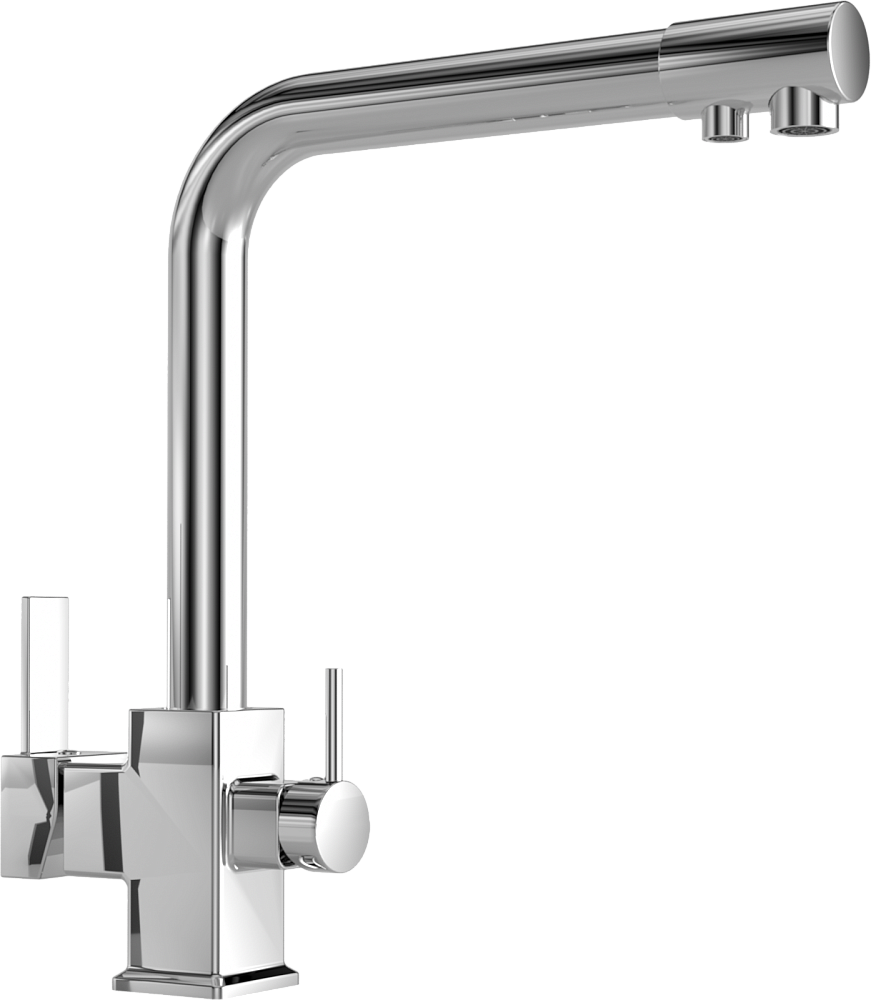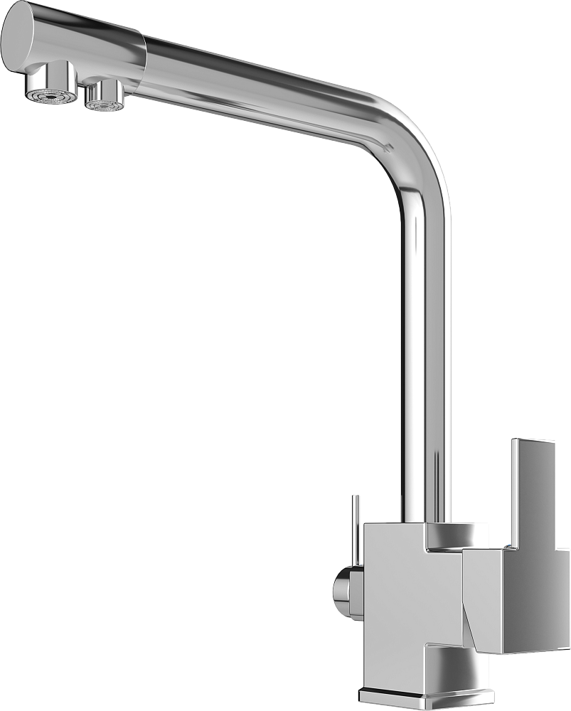 Изюминка модели — встроенный кран фильтра. Для подачи питьевой воды смеситель оснащен дополнительным изливом и отдельным рычагом управления. Это удобно, ведь кран не занимает лишнего места и не требует отдельной установки. Стоит отметить еще три уникальные разработки: WaterECO (экономный расход воды), Diamond coating (хромоникелевое покрытие с непревзойденной износостойкостью, устойчивостью к царапинам и воздействию чистящих средств) и Quick installation (быстрый монтаж с простым креплением). Гарантия на смеситель — 5 лет.