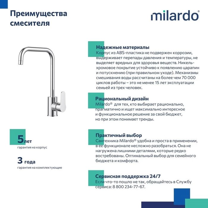 Отзывы о Смеситель для кухни Milardo Poli POLSBL0M05 хром