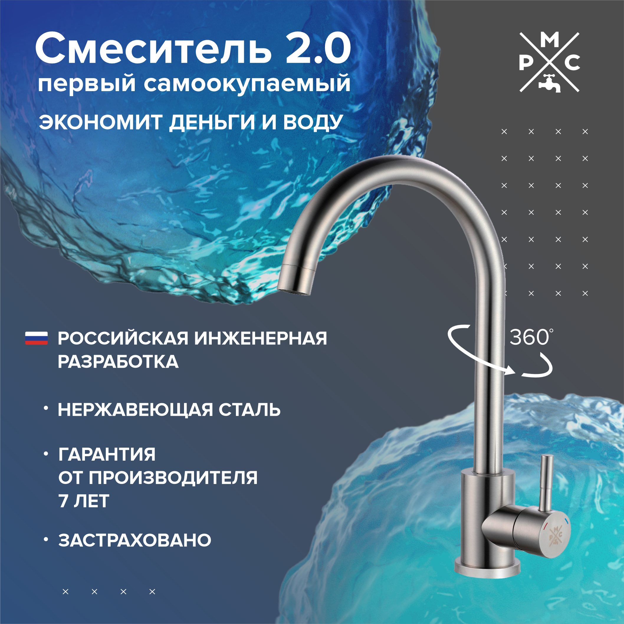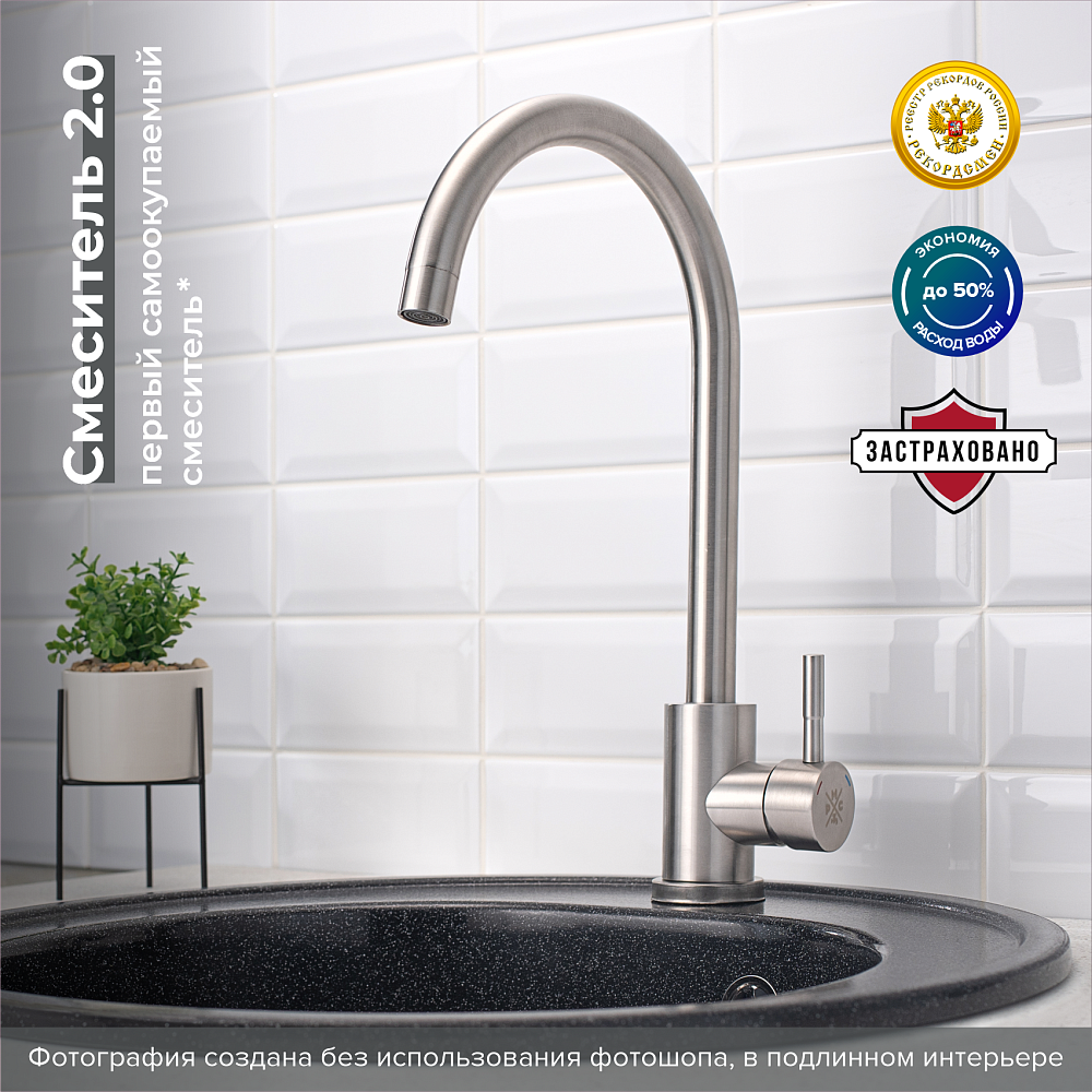 Отзывы о Смеситель для кухни РМС SUS124-017FL нержавеющая сталь