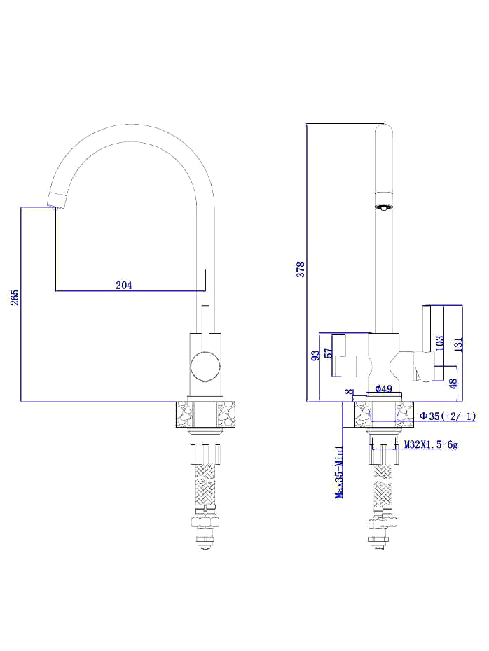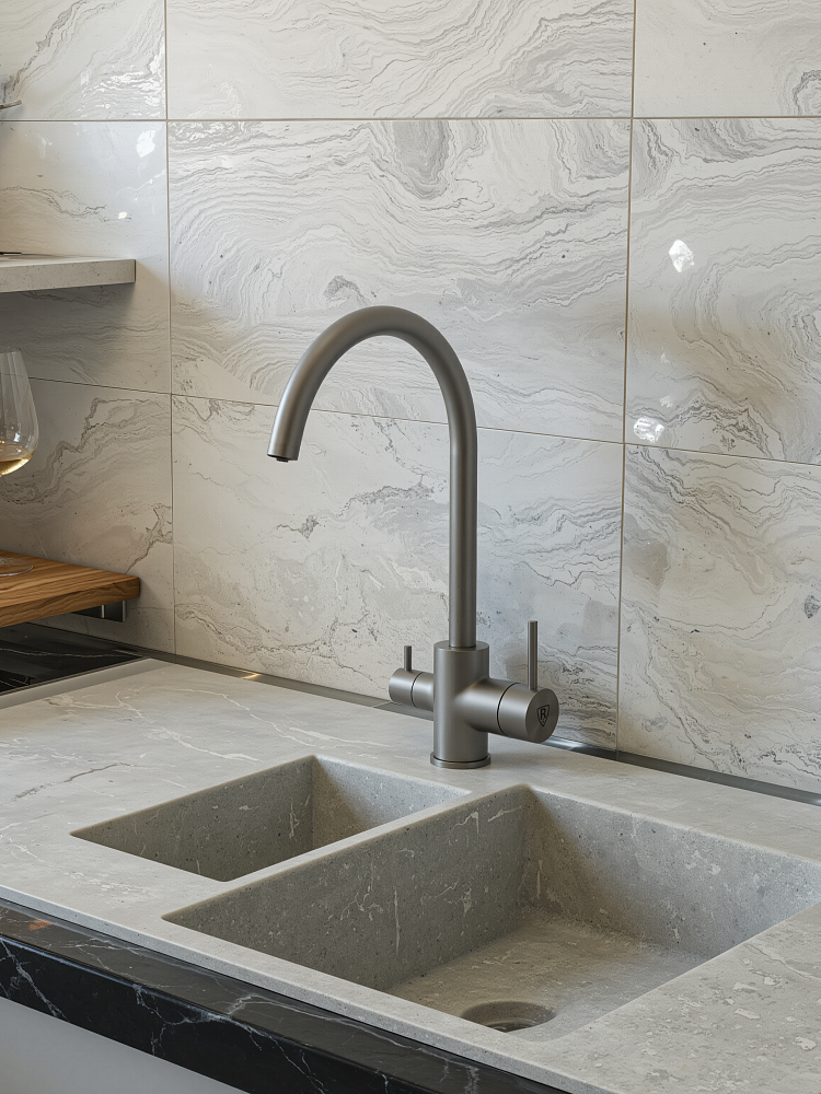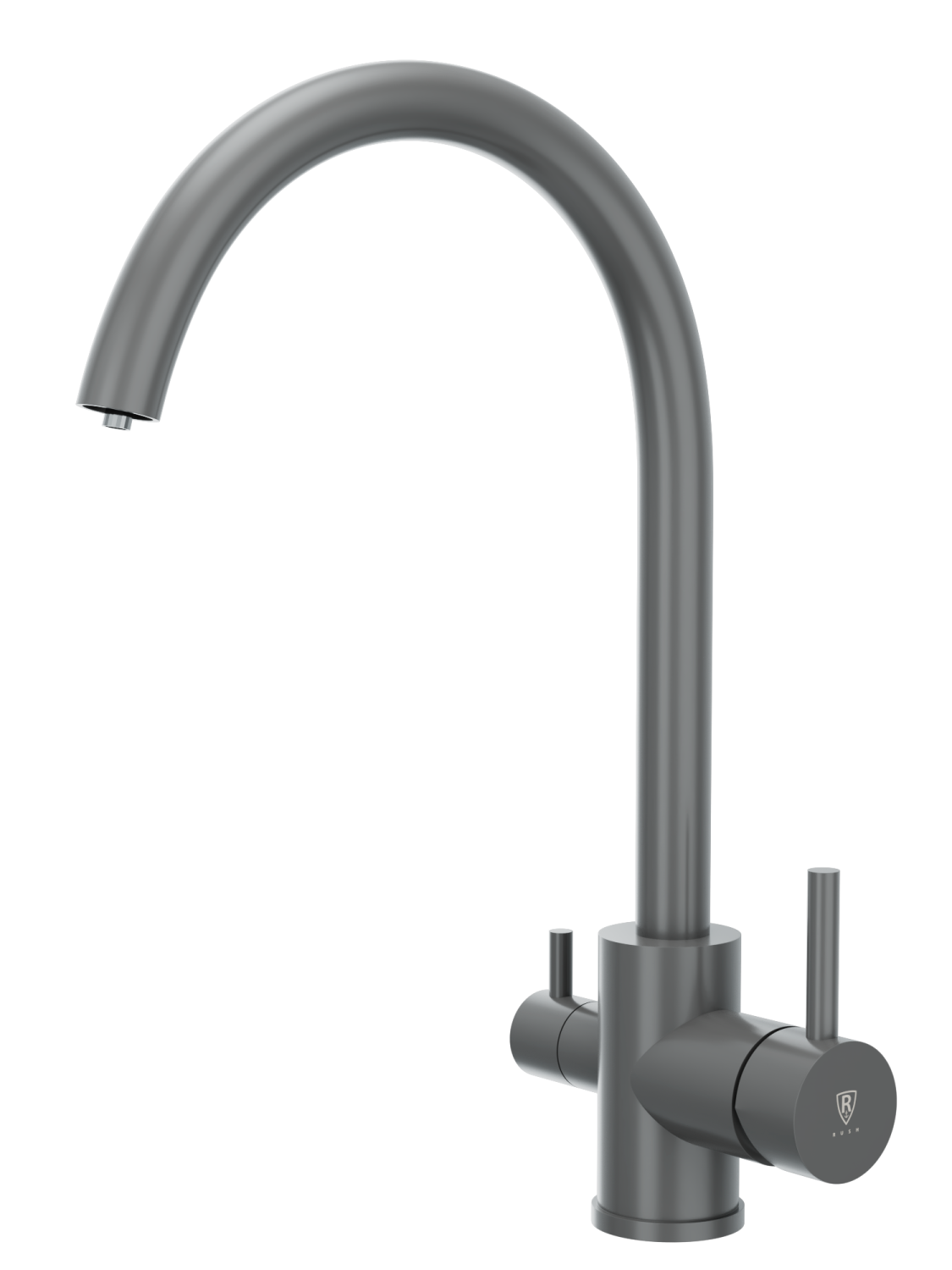Смеситель для кухни с подключением к фильтру с питьевой водой RUSH SUS9035-37Grey с металлической ручкой изготовлен из нержавеющей стали SUS304 и имеет рычажное управление.