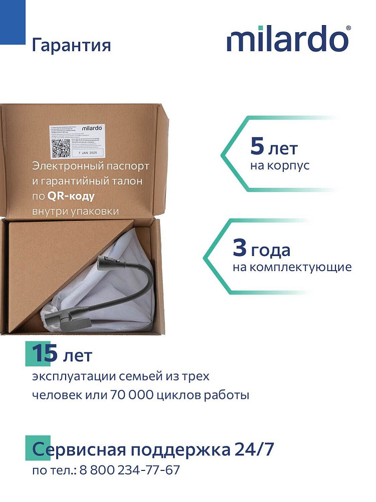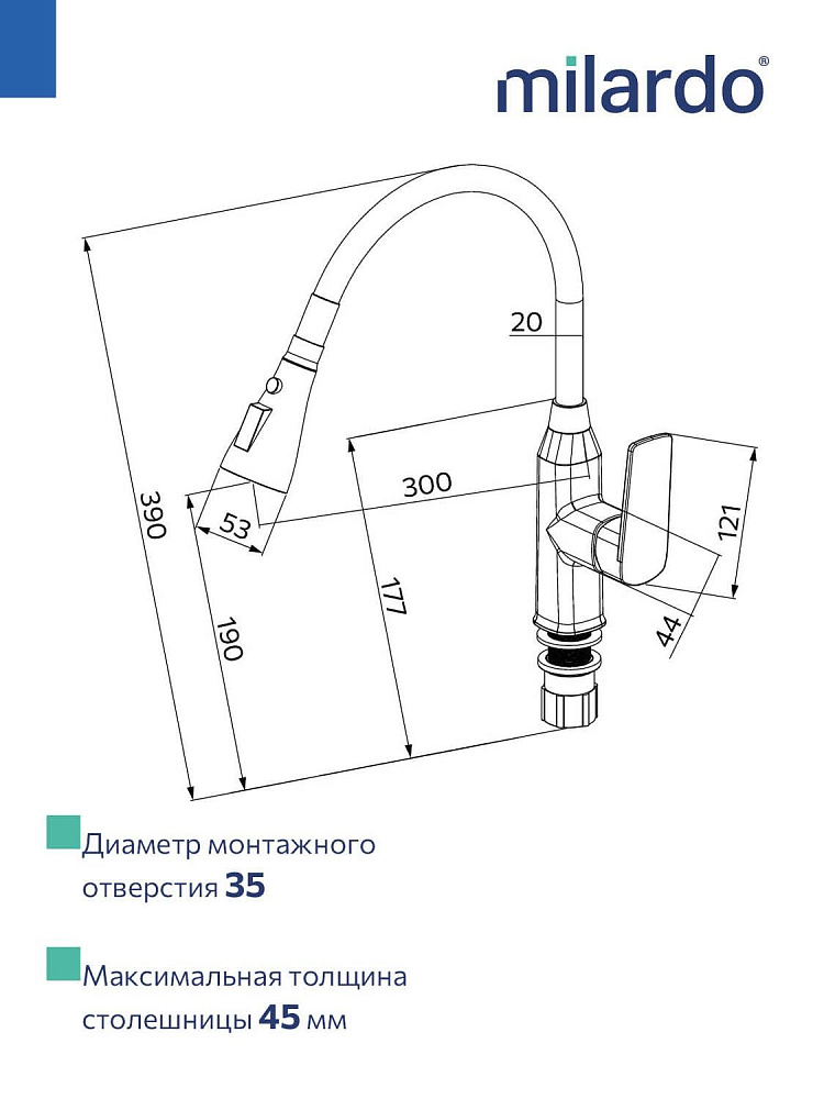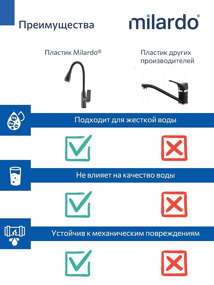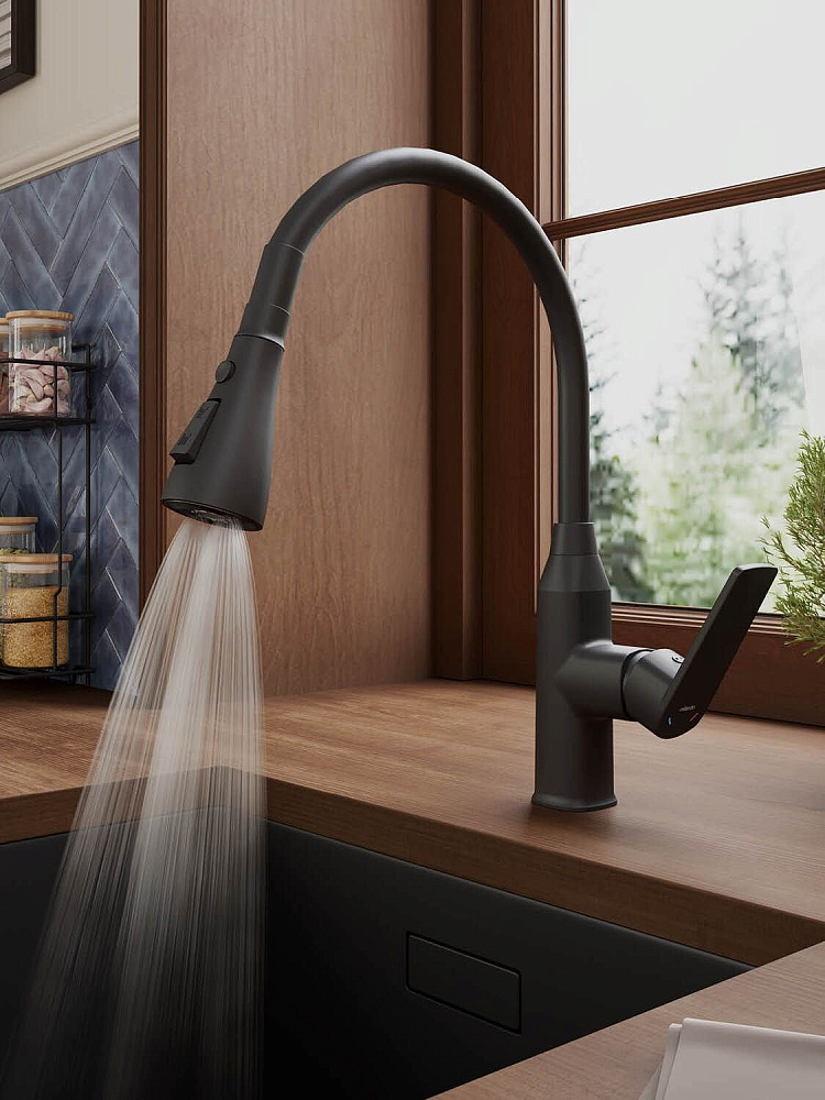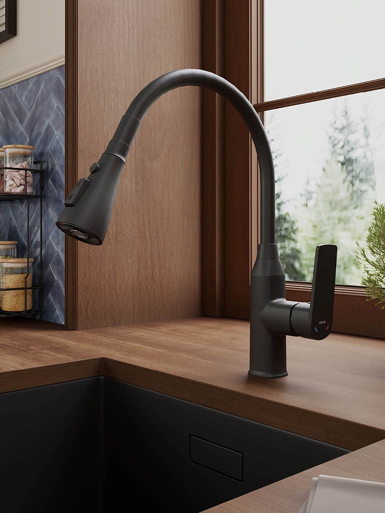 Смеситель для кухни с гибким изливом, черный матовый, Milardo, Poli, POLBL0FM05