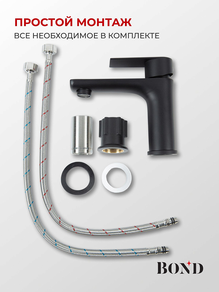 Смеситель для раковины BOND Стиль B62-2188 черный