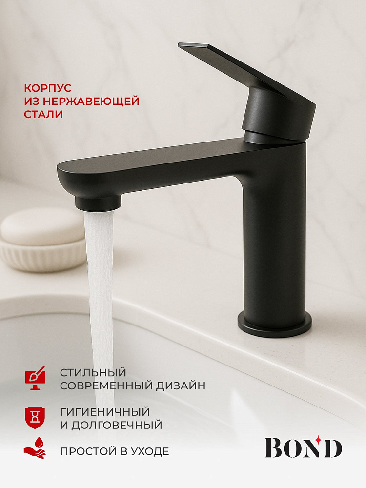 Отзывы о Смеситель для раковины BOND Стиль B62-2188 черный