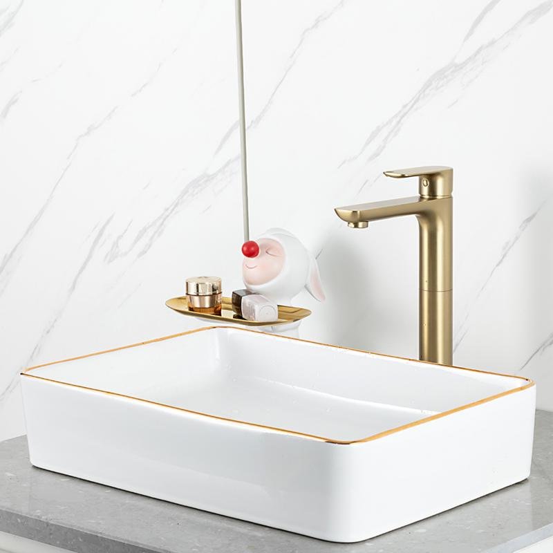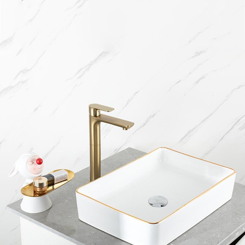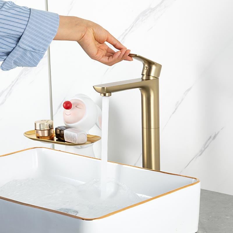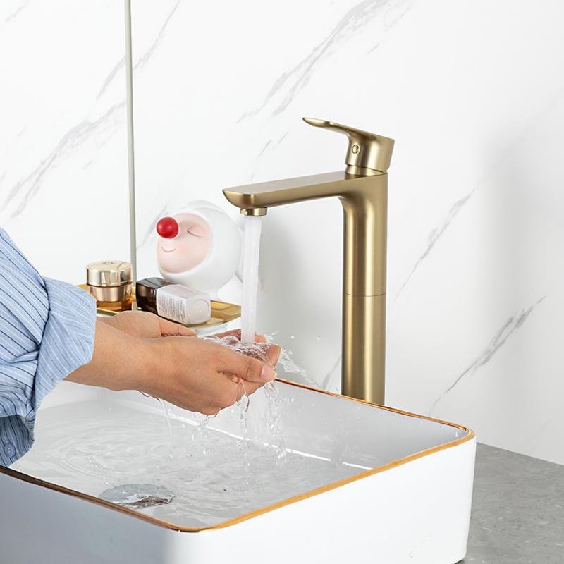 Смеситель для раковины Gappo G48-3 G1048-32 золотой сатин