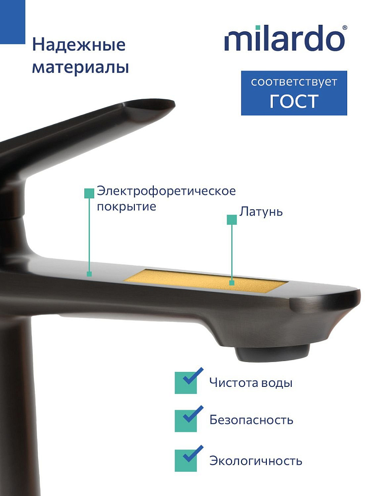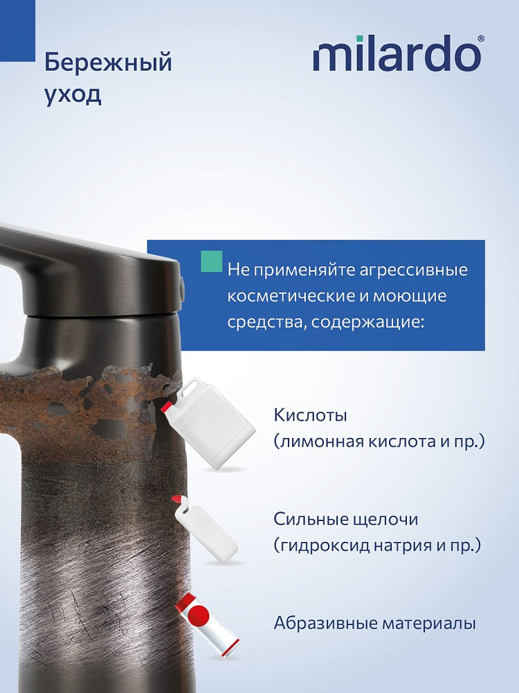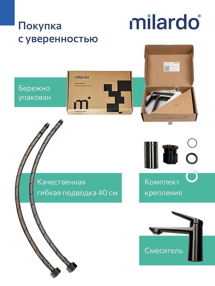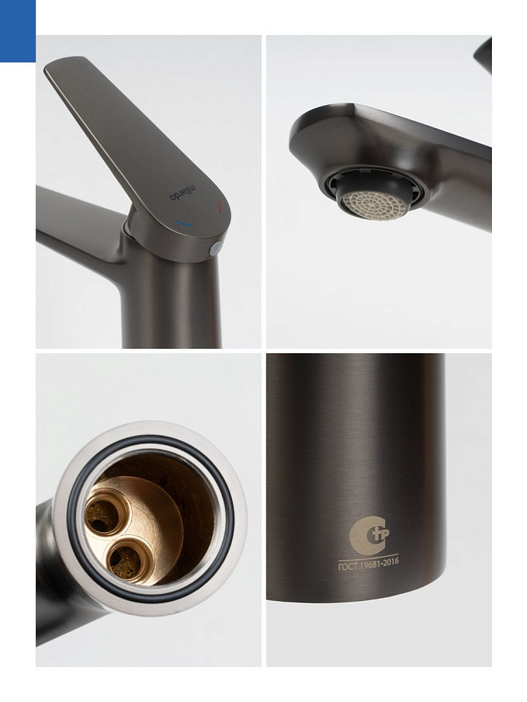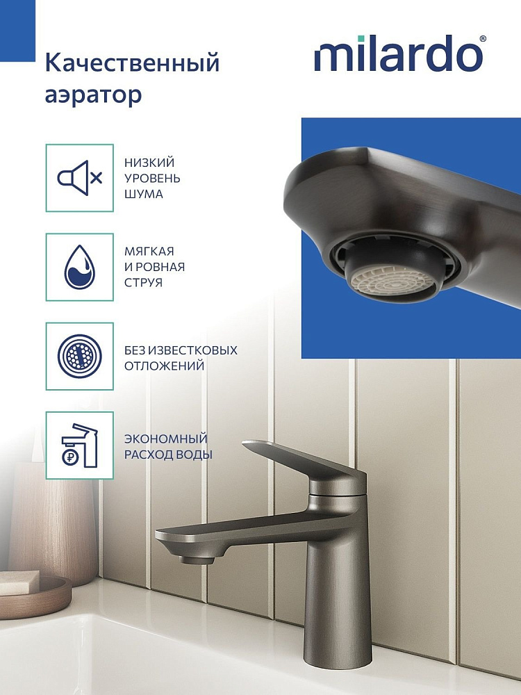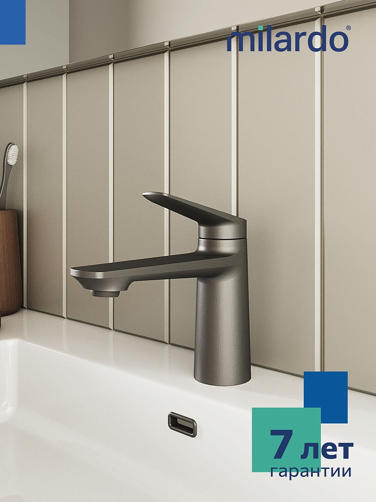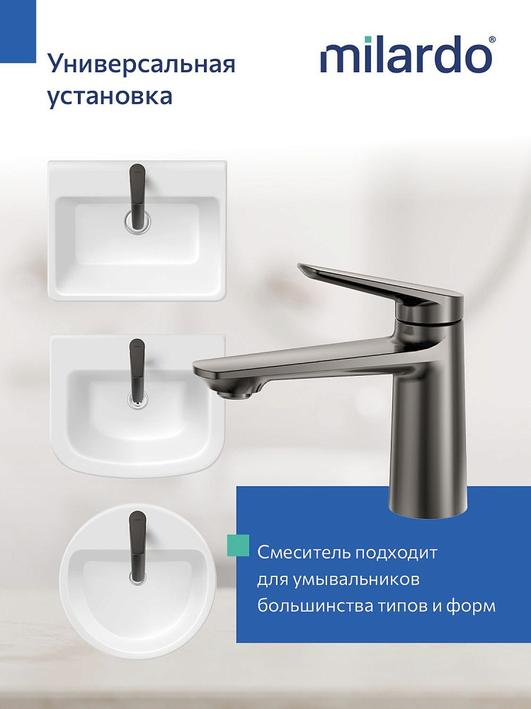 Смеситель для раковины, графит, Milardo, Лип (Leap), LEAGM00M01
