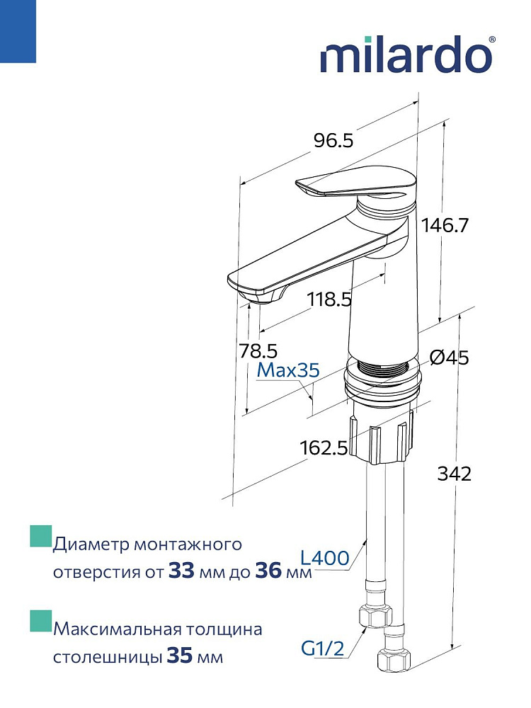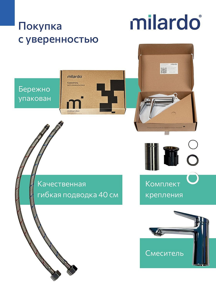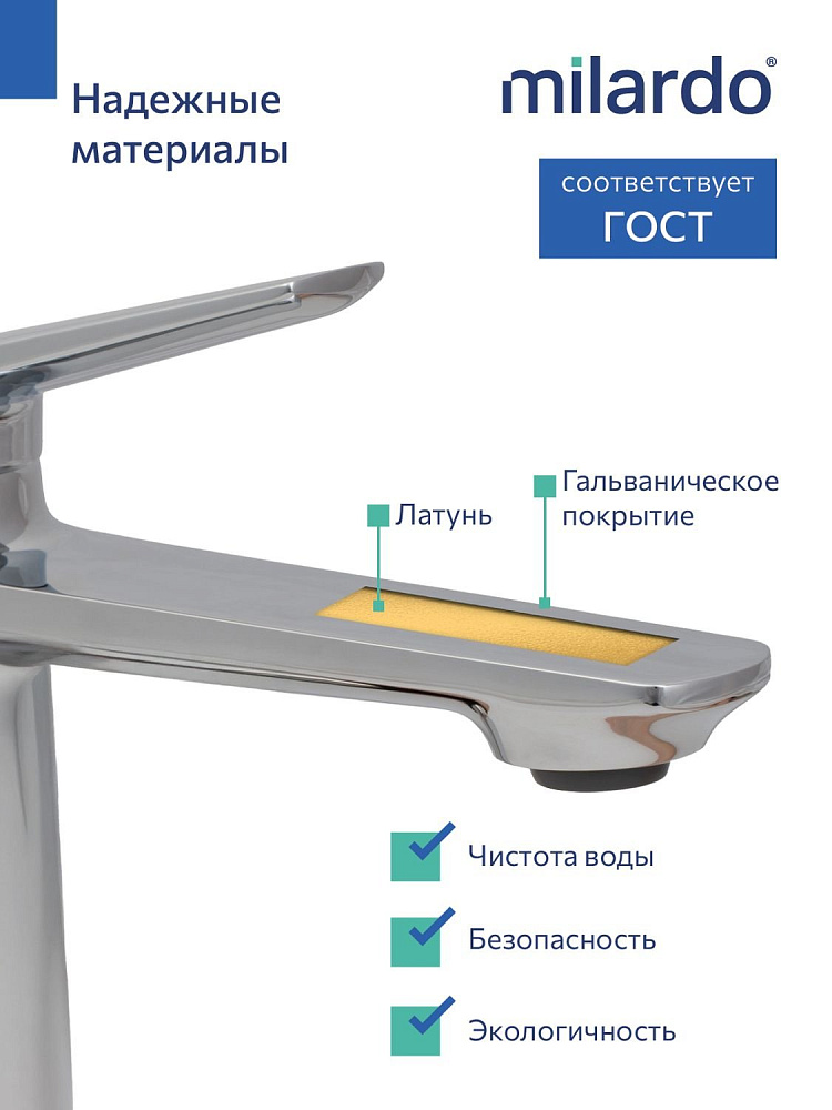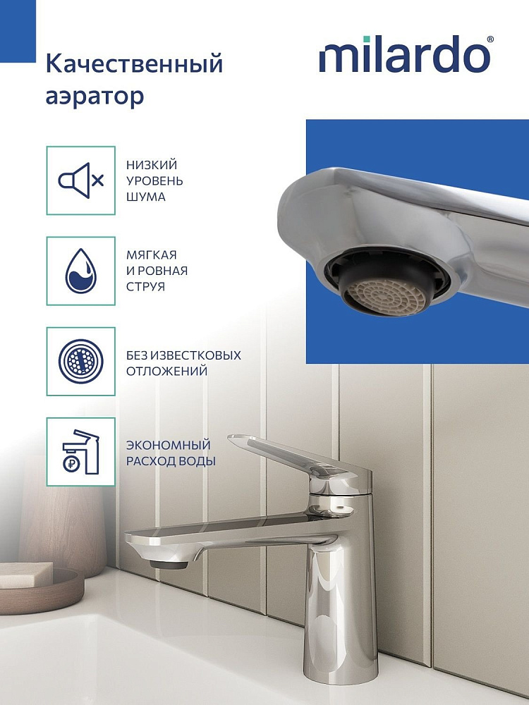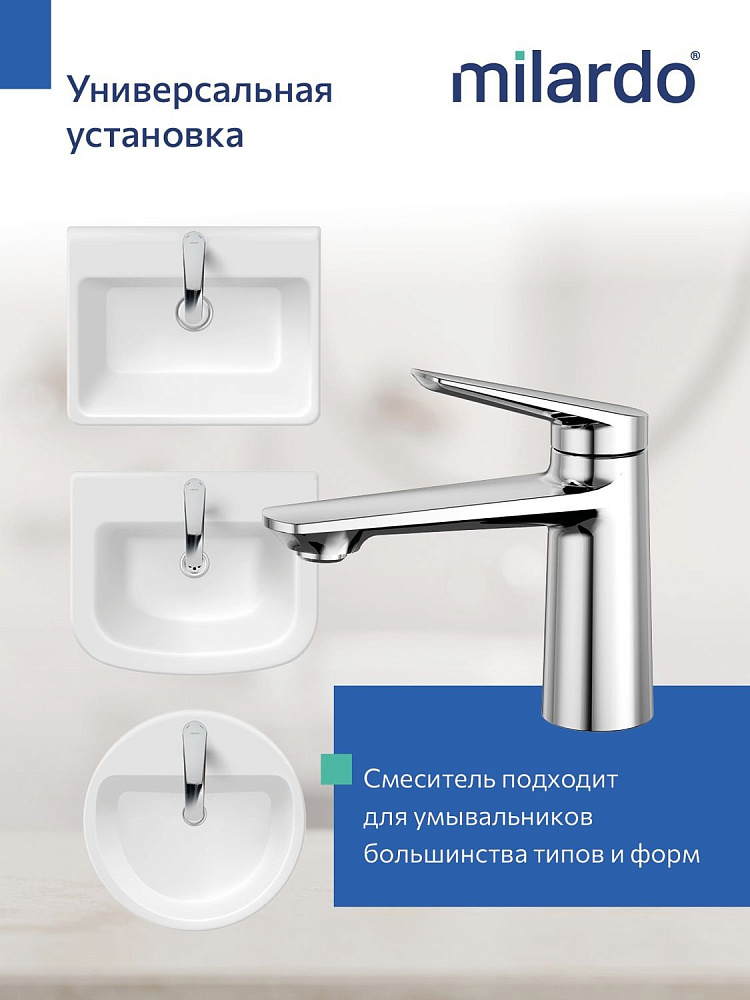 Смеситель для раковины, хром глянцевый, Milardo, Лип (Leap), LEASB00M01