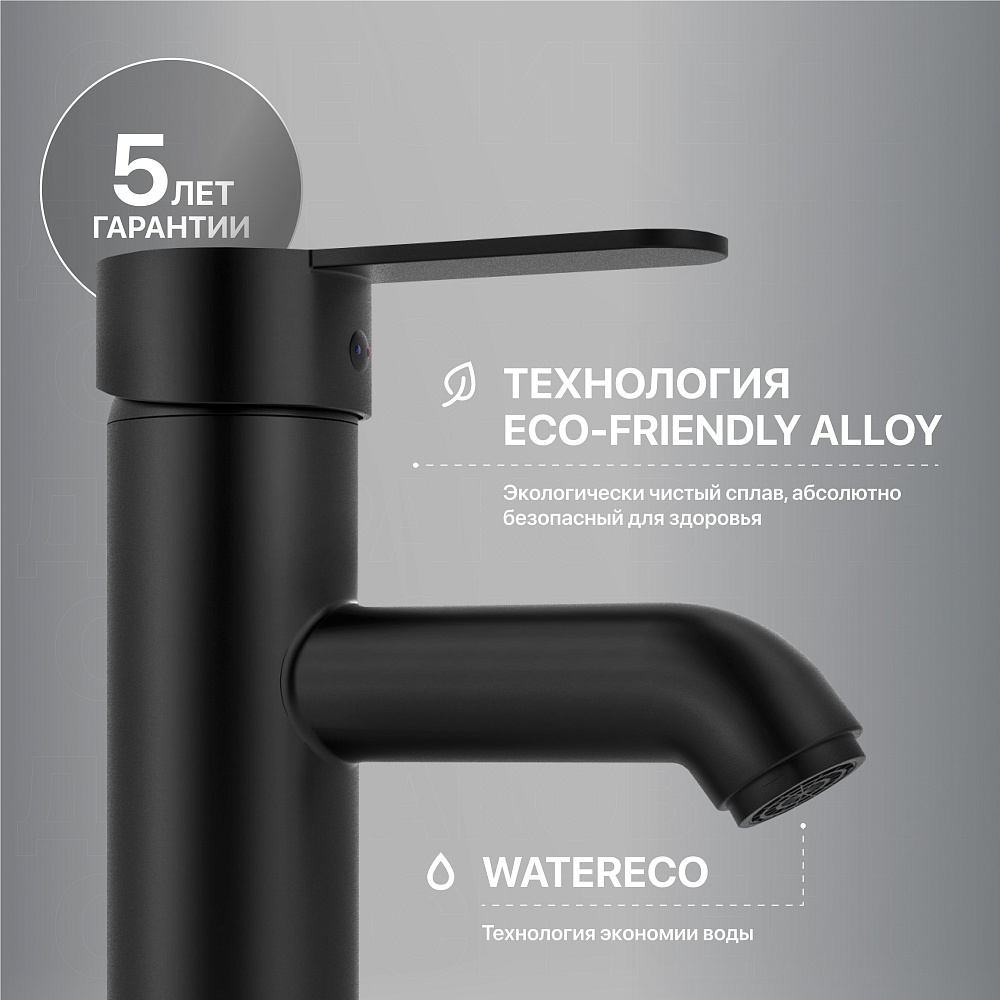 Однорычажный черный смеситель для раковины MEGA City MG-ZRV100-B — для ценителей смелого дизайна. Внешний вид изделия разработан специалистами из Германии, Дании и Норвегии. Материалом выбрана латунь собственного производства. Созданная по технологии Eco-friendly alloy, она является экологически чистой и безопасной для здоровья. Порошковая матовая покраска дает максимально устойчивое к царапинам и химическим средствам покрытие.