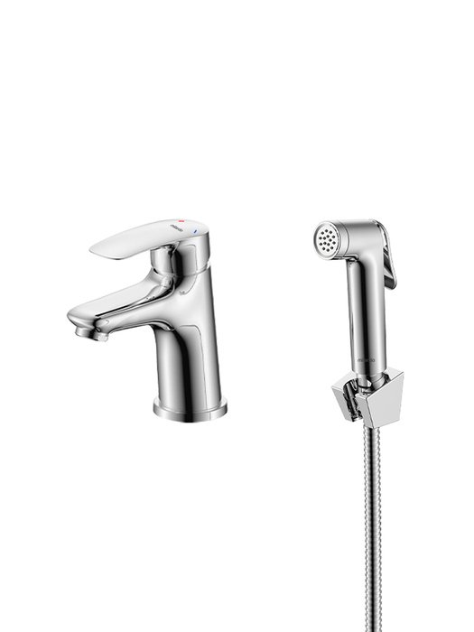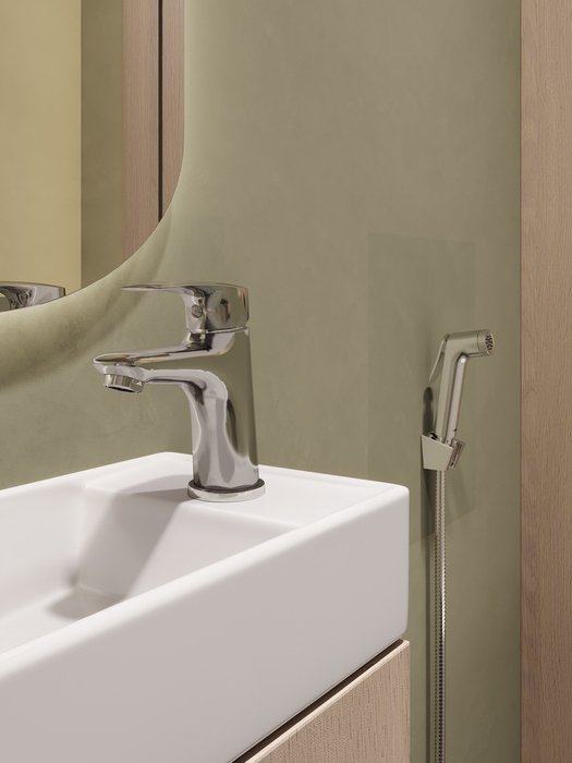 Смеситель с гигиеническим душем отличается универсальным характером: основной акцент в его дизайне приходится на плавные линии корпуса.