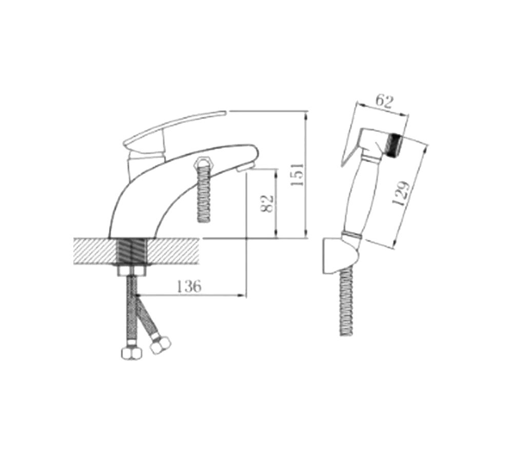 Комплект для раковины Potato 35 P1235 с гигиеническим душем, хром