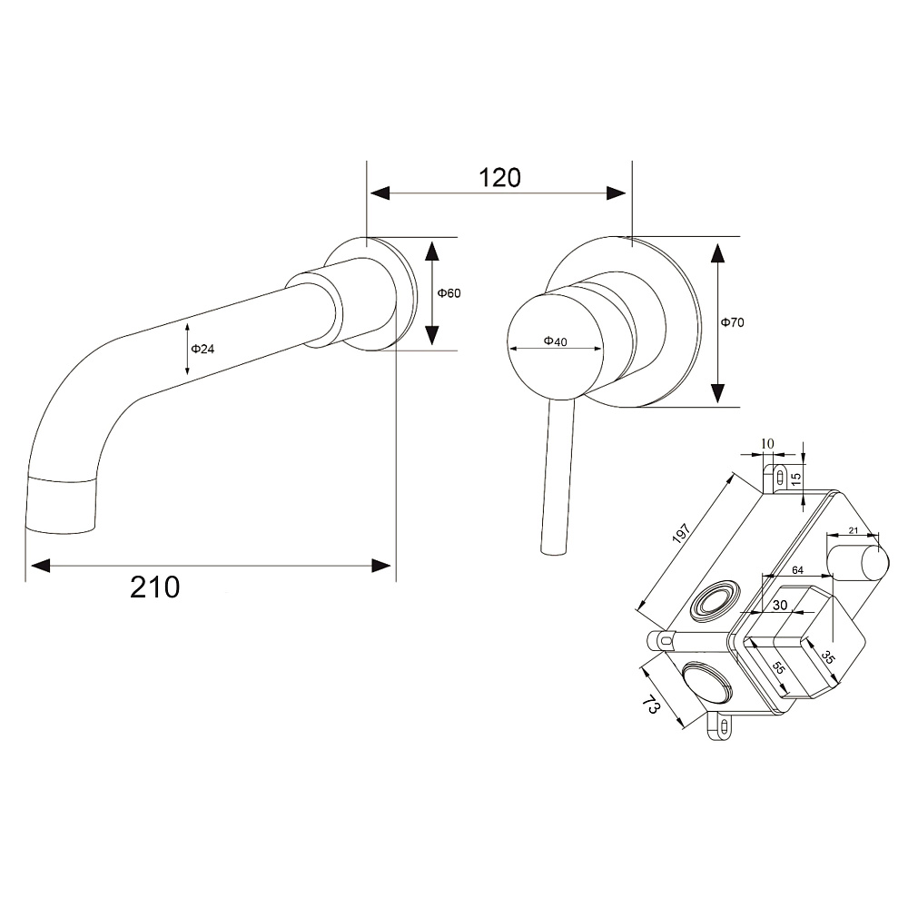 Смеситель для раковины РМС Sus129 SUS129-3 С ВНУТРЕННЕЙ ЧАСТЬЮ, сталь