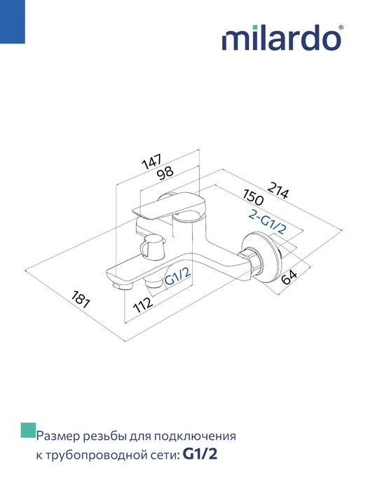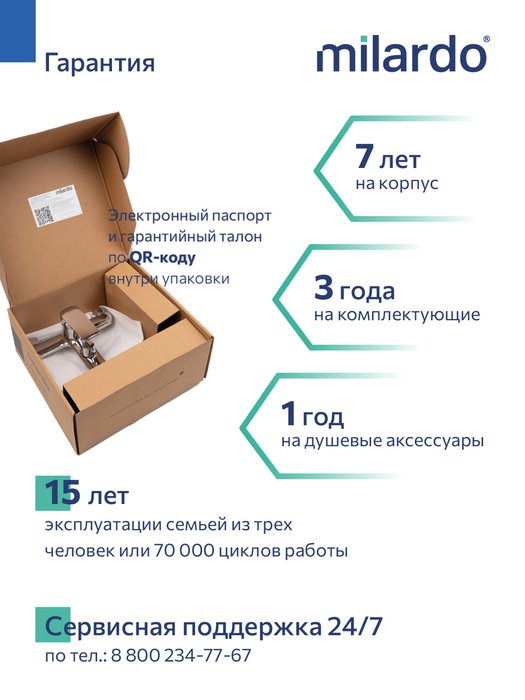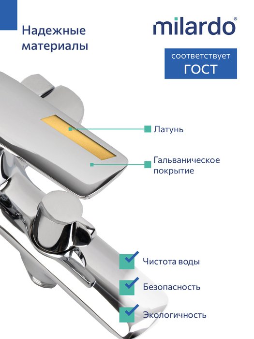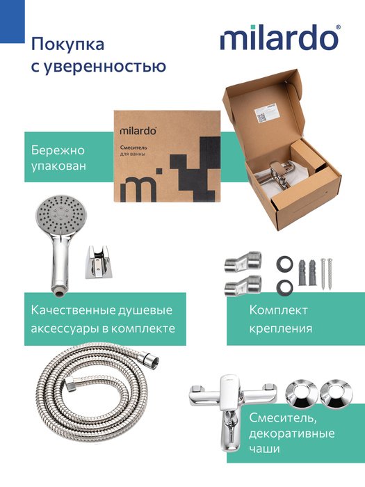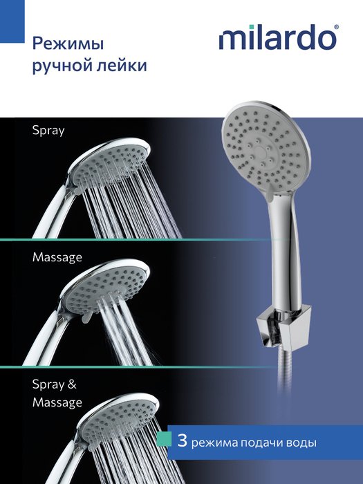 Смеситель для ванны с душем, лейка 3 режима, шланг 1,5 м, хром глянцевый, Milardo, Maks, MAKSB00M02