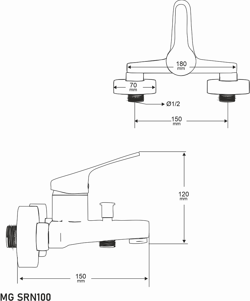 Смеситель для ванны с душем MEGA Delta MG-SRN100 + Душевой гарнитур Grohe Tempesta New 27794001