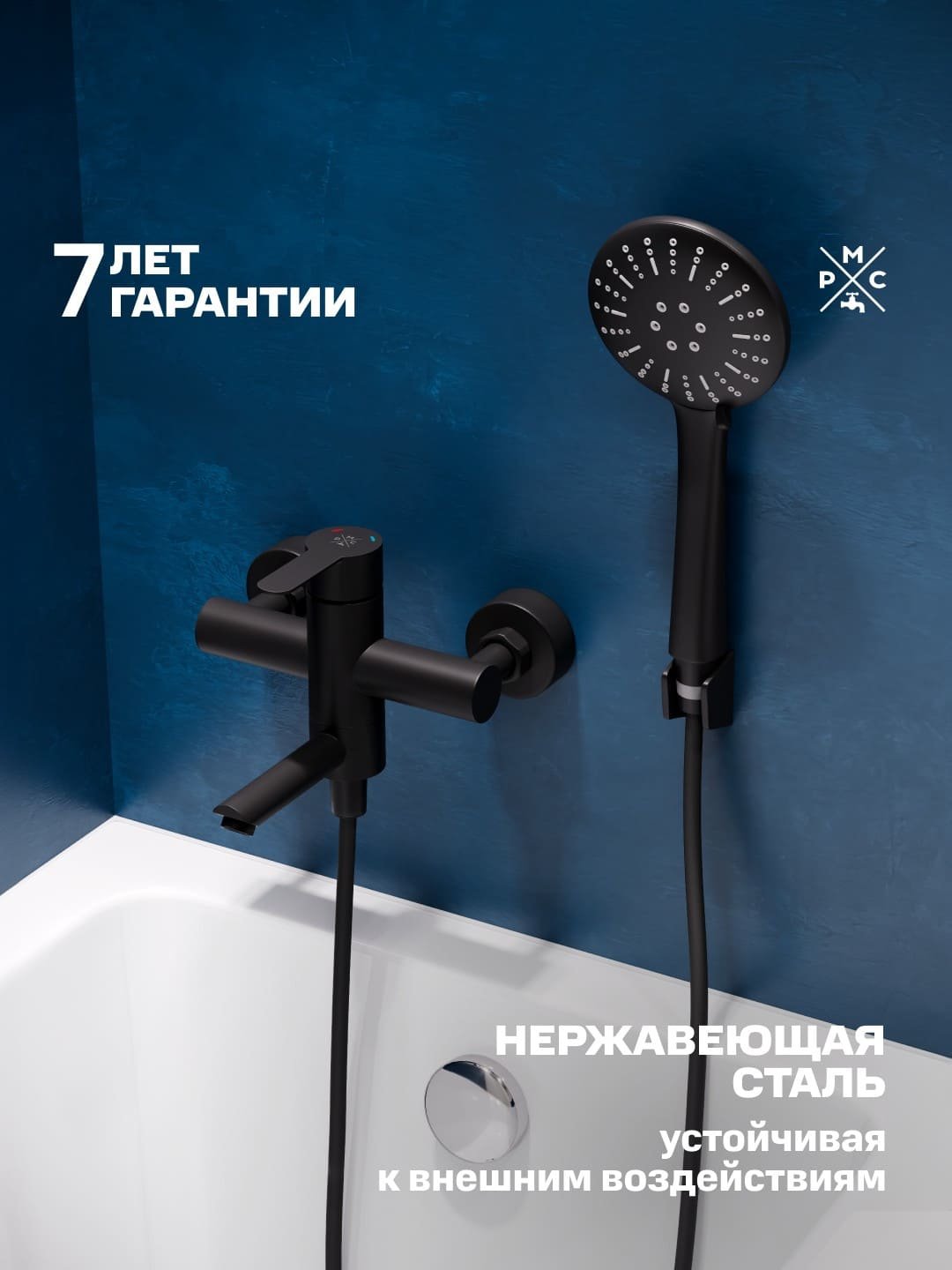 Отзывы о Смеситель для ванны с душем РМС SUS124BL-009E матовый черный
