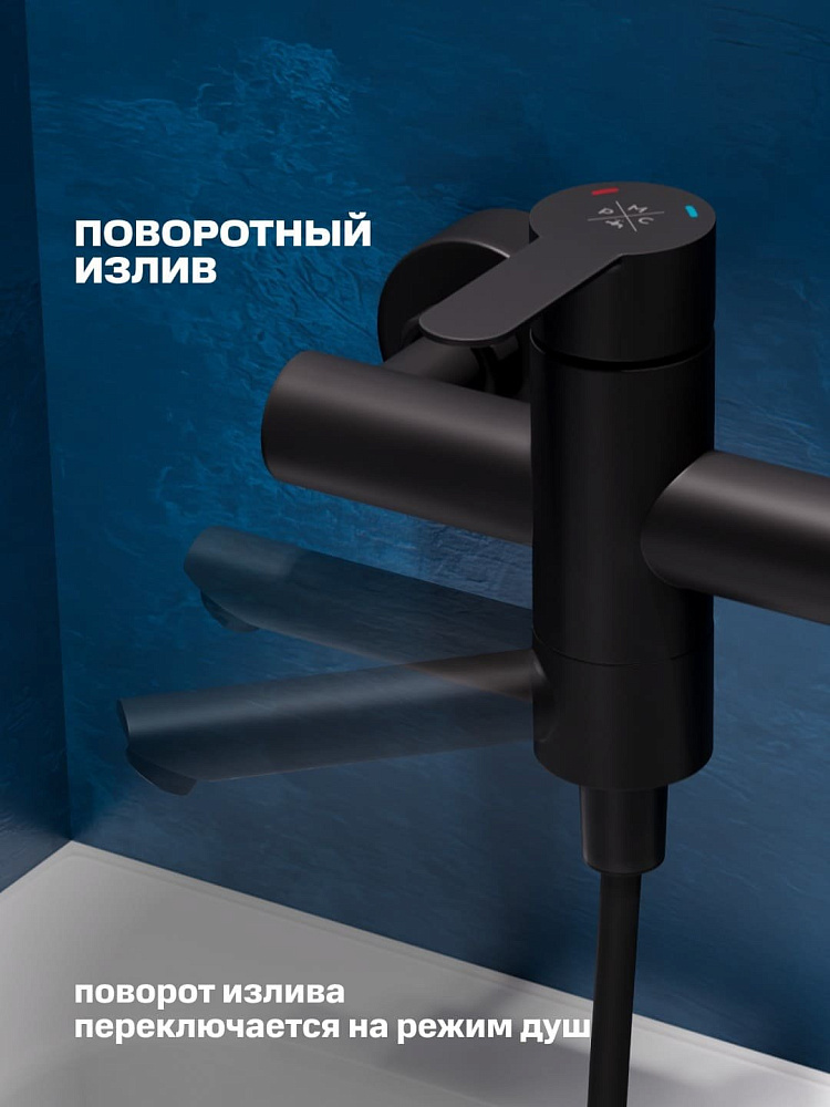 Смеситель для ванны с душем РМС SUS124BL-009E матовый черный
