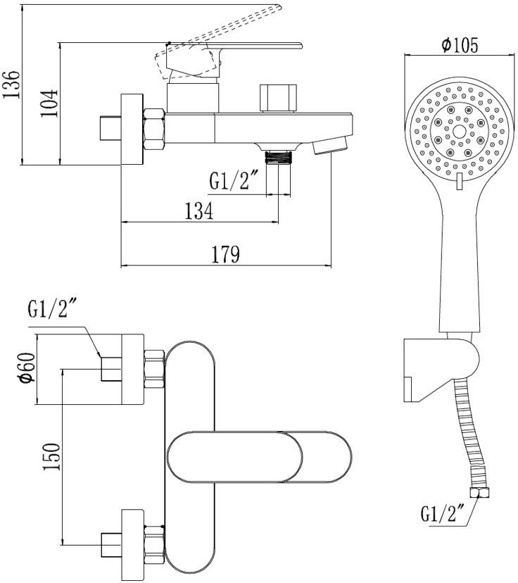 душевая лейка / душевой шланг / настенный держатель