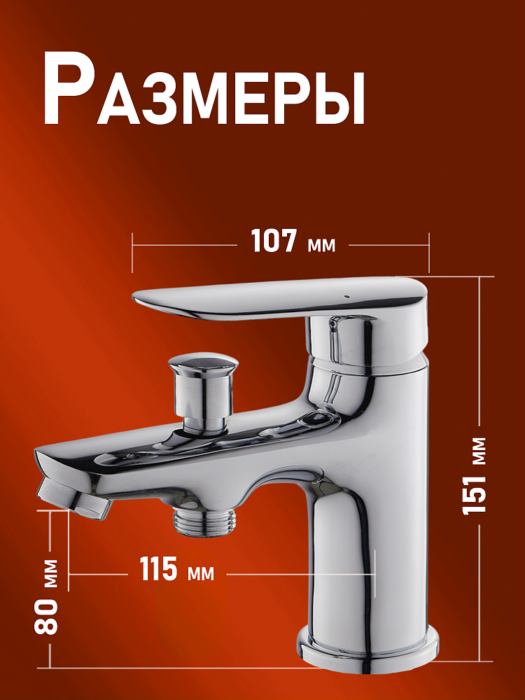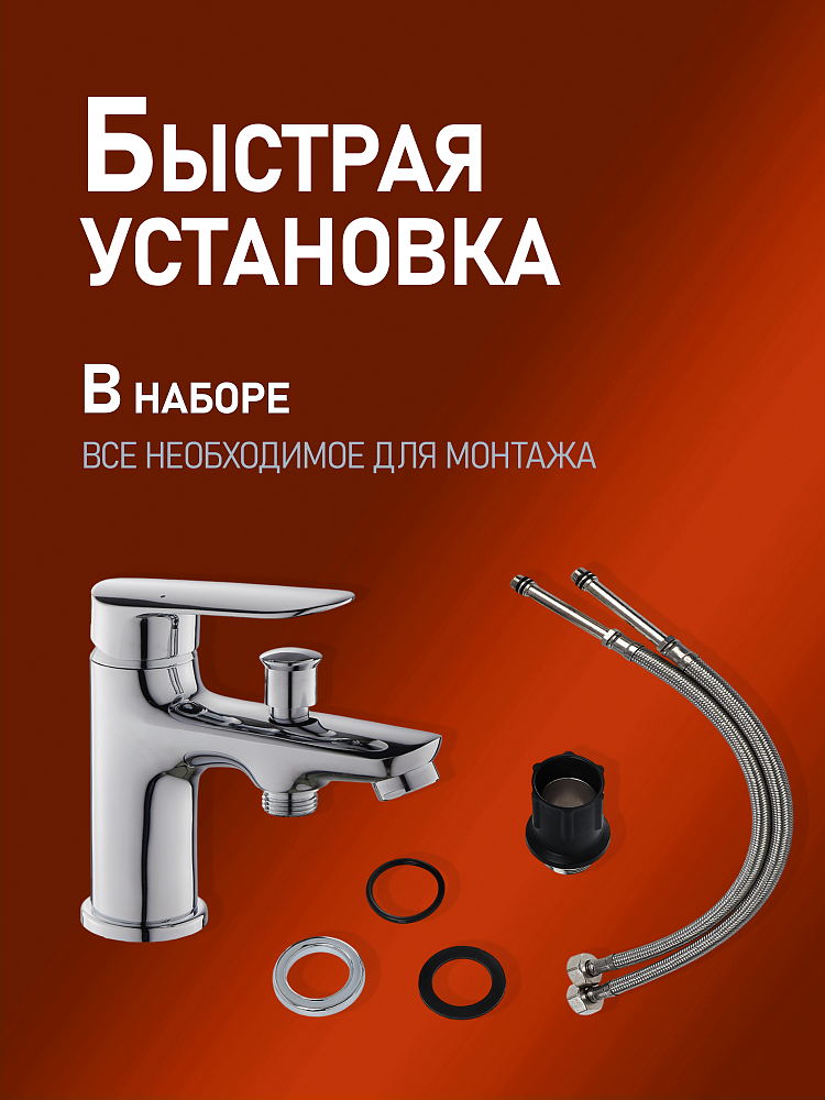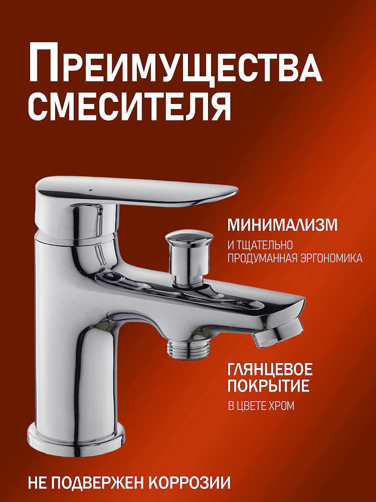 установки на борт ванны. Переключатель на душ интегрирован в излив