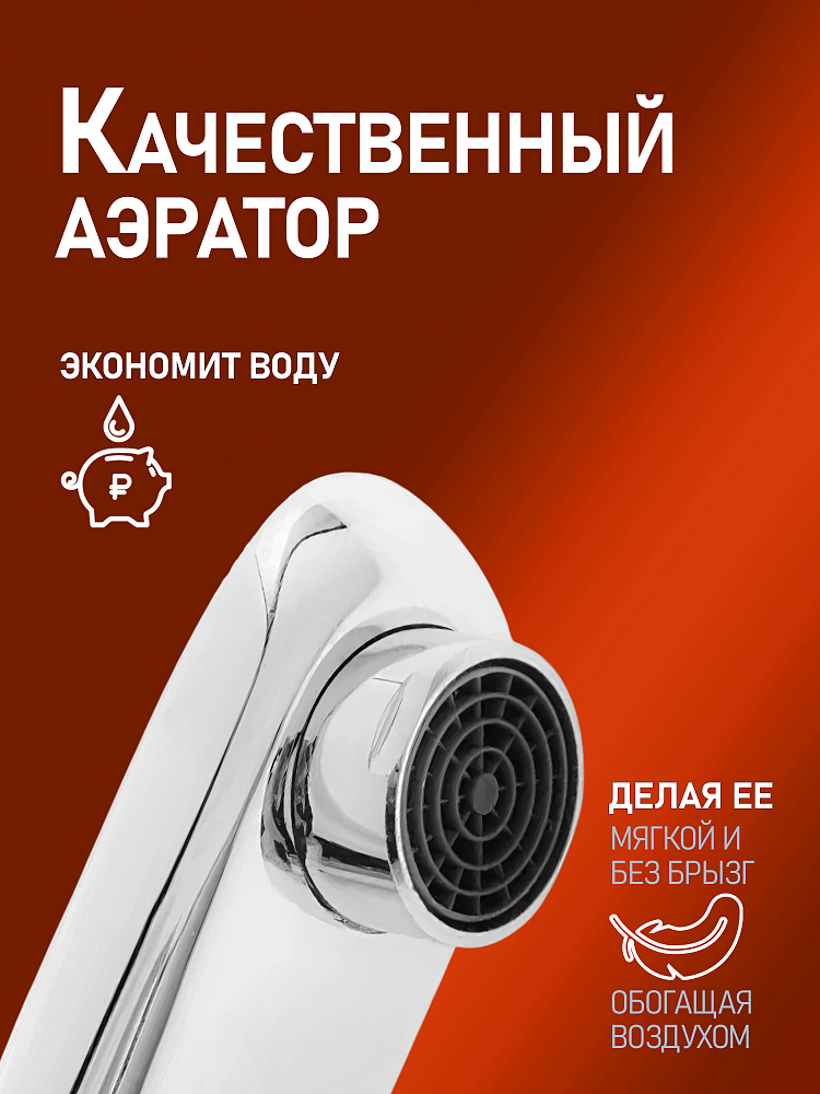 не тускнеет со временем. Аэратор обогащает струю воздухом, делая ее