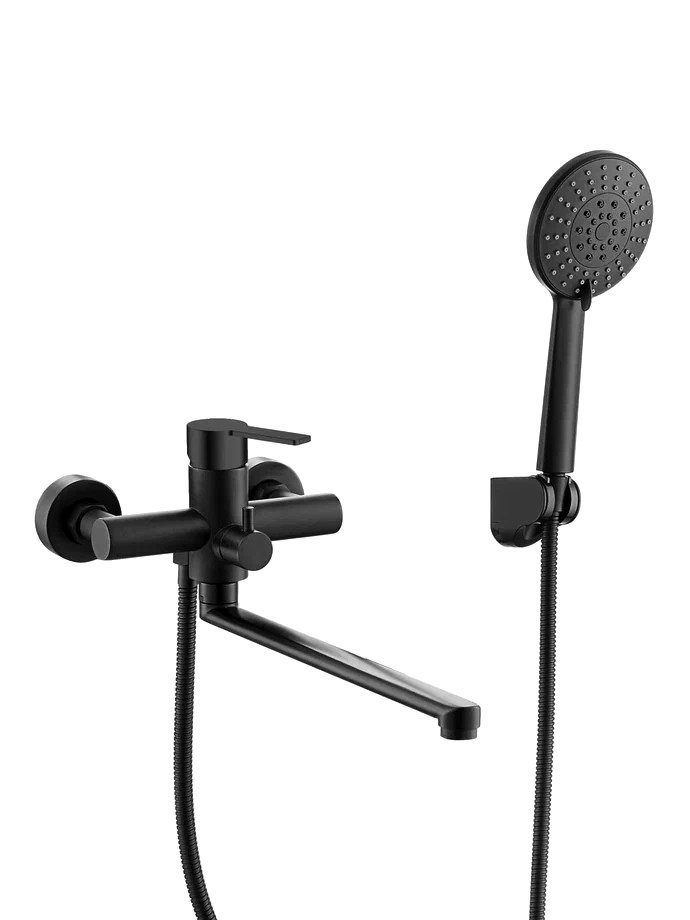 Однозахватный смеситель для ванны/душа с универсальным изливом и душевым набором Agger Easy украсит современный интерьер ванной комнаты. Корпус изделия изготовлен из высококачественной нержавеющей стали, не подверженной коррозии от длительного контакта с водой. Фирменный картридж Agger делает лёгким управление напором и температурой воды, а поворотный керамический дивертор переключит её направление с излива на душ даже при низком давлении. Покрытие в цвете матовый черный, за которым просто ухаживать мягкой салфеткой, нанесено методом порошковой окраски с многоступенчатой системой подготовки и высокотемпературной обработкой. Аэратор экономит воду и, обогащая струю воздухом, делает её мягкой и без брызг. В комплекте душевой набор: ручной душ d115 мм, высота 255 мм (3 режима), душевой шланг 150 см в металлической оплетке (с защитой от перекручивания), настенный держатель лейки с регулировкой угла наклона. Стандарт подводки - 1/2.