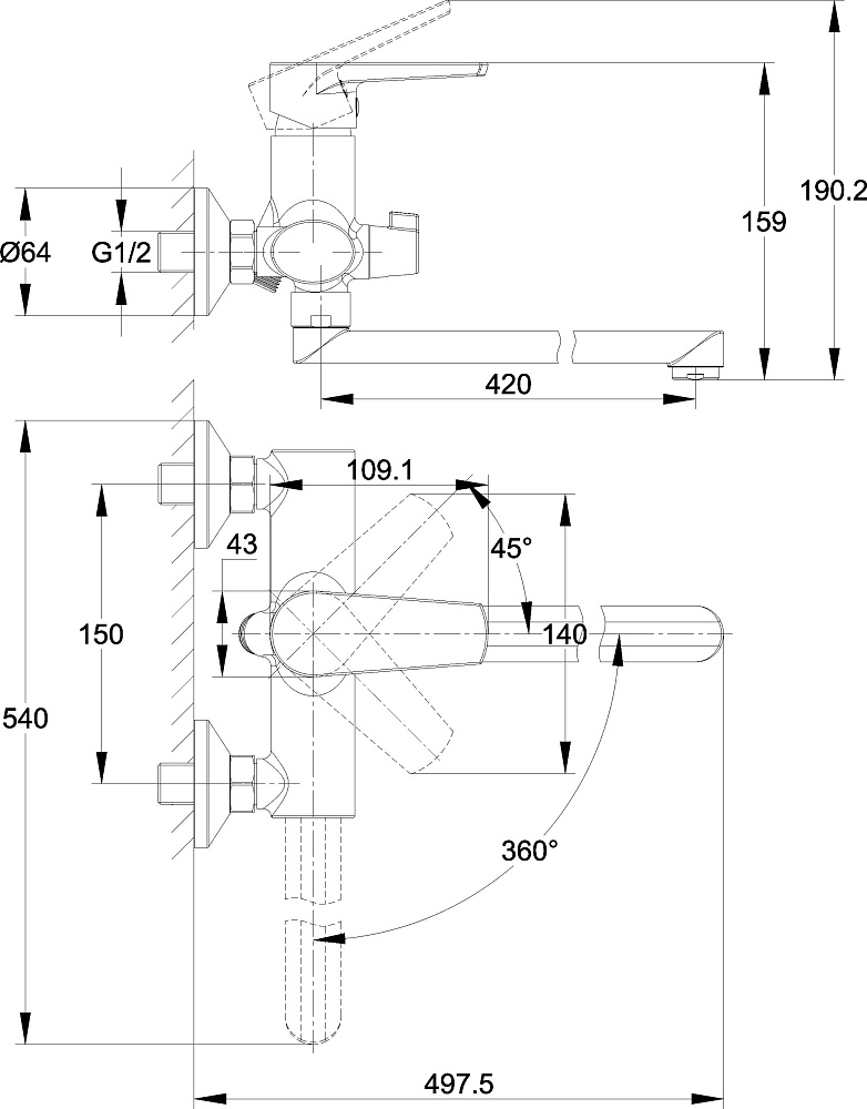 Отзывы о Смеситель с длинным изливом для ванны Cersanit Модуо (Moduo) 64098