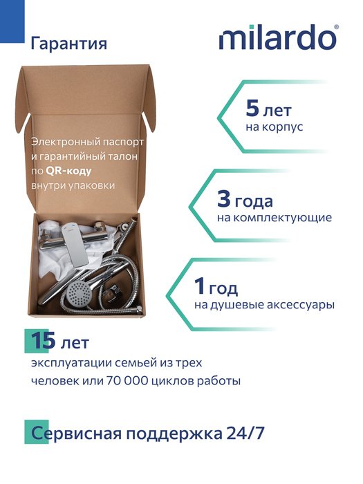 Ручная однорежимная лейка, душевой шланг (1,5 м) в оплетке из нержавеющей стали и крепеж идут в комплекте.