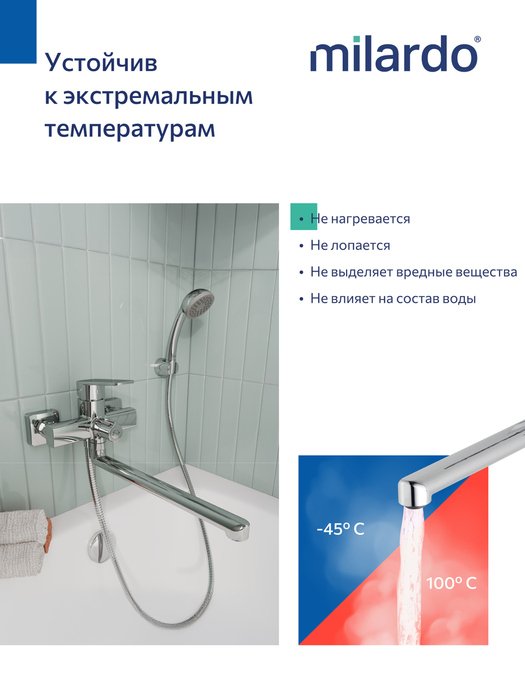 Высокая ударопрочность сохраняется даже при экстремально низких температурах, что помогает подготовиться к дачному сезону в любых условиях или избежать протечек при отключении горячего водоснабжения в квартире.