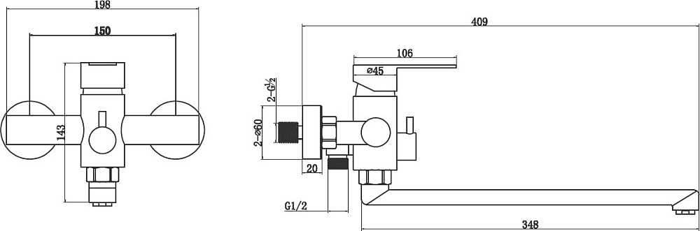 Смесители для ванны с длинным изливом