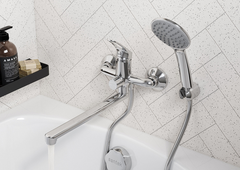 Отзывы о Смеситель Santek Баус для ванны-душа, длинный излив с аксессуарами, WH5A12010C001