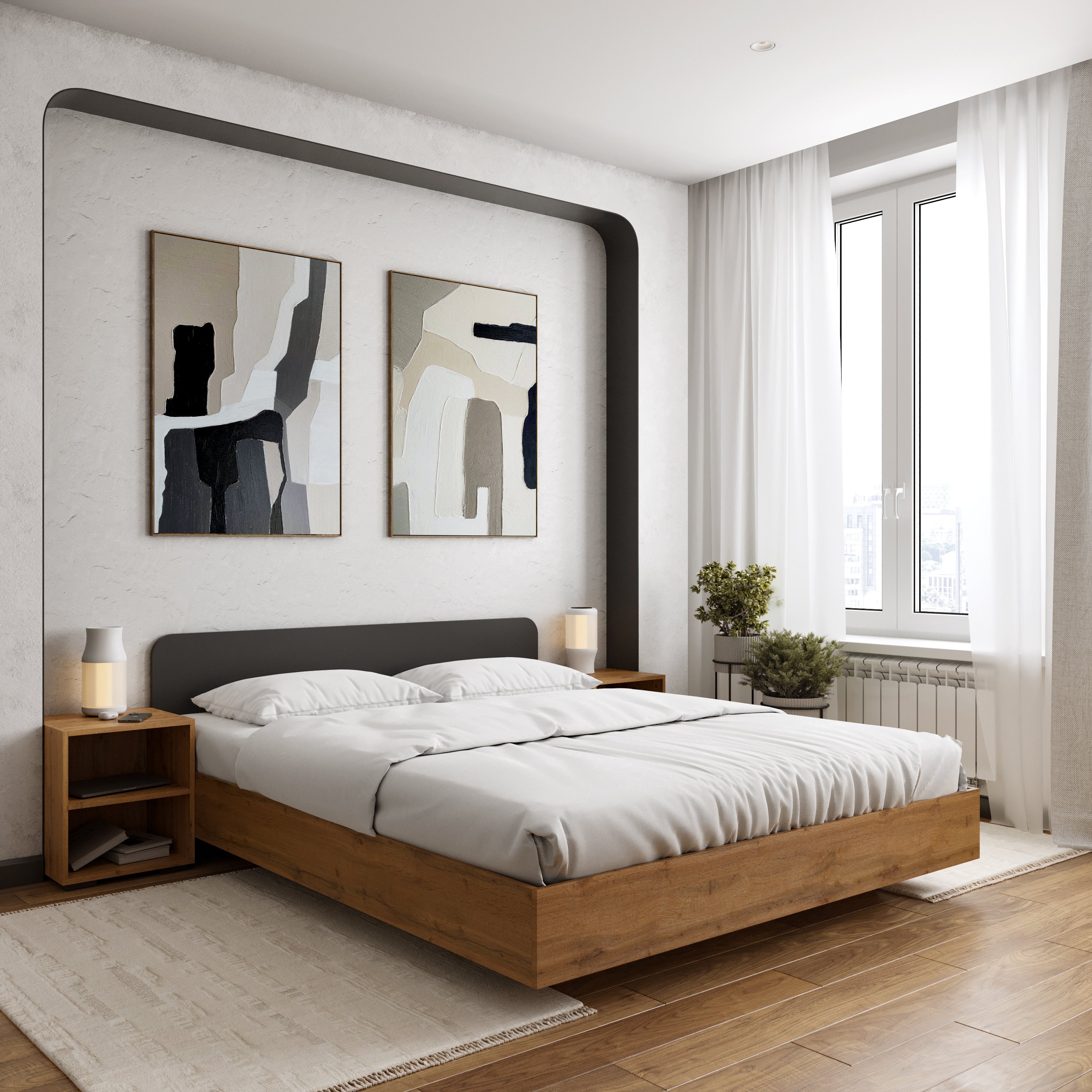 Спальный гарнитур DIWO Кострома 160x200 с прикроватными тумбами, дуб вотан, антрацит